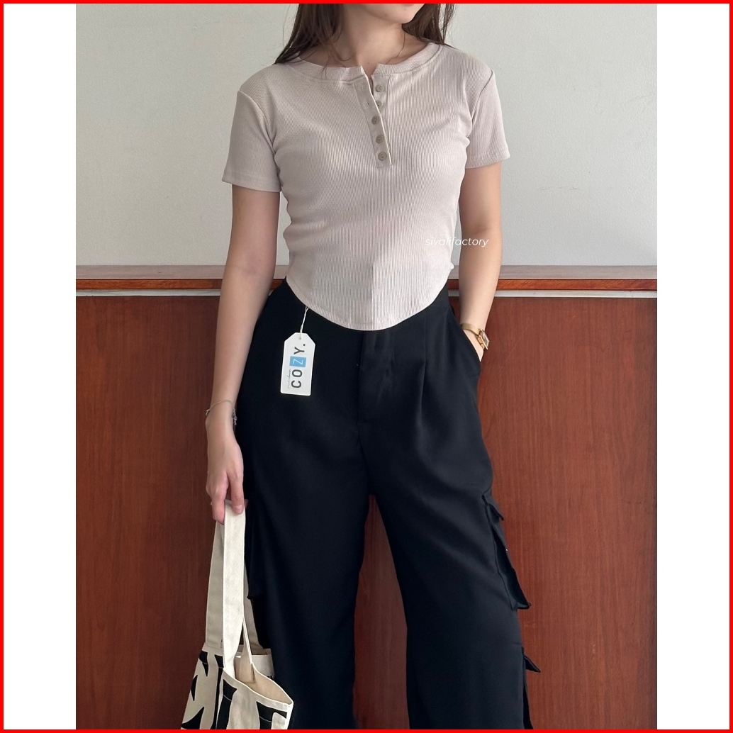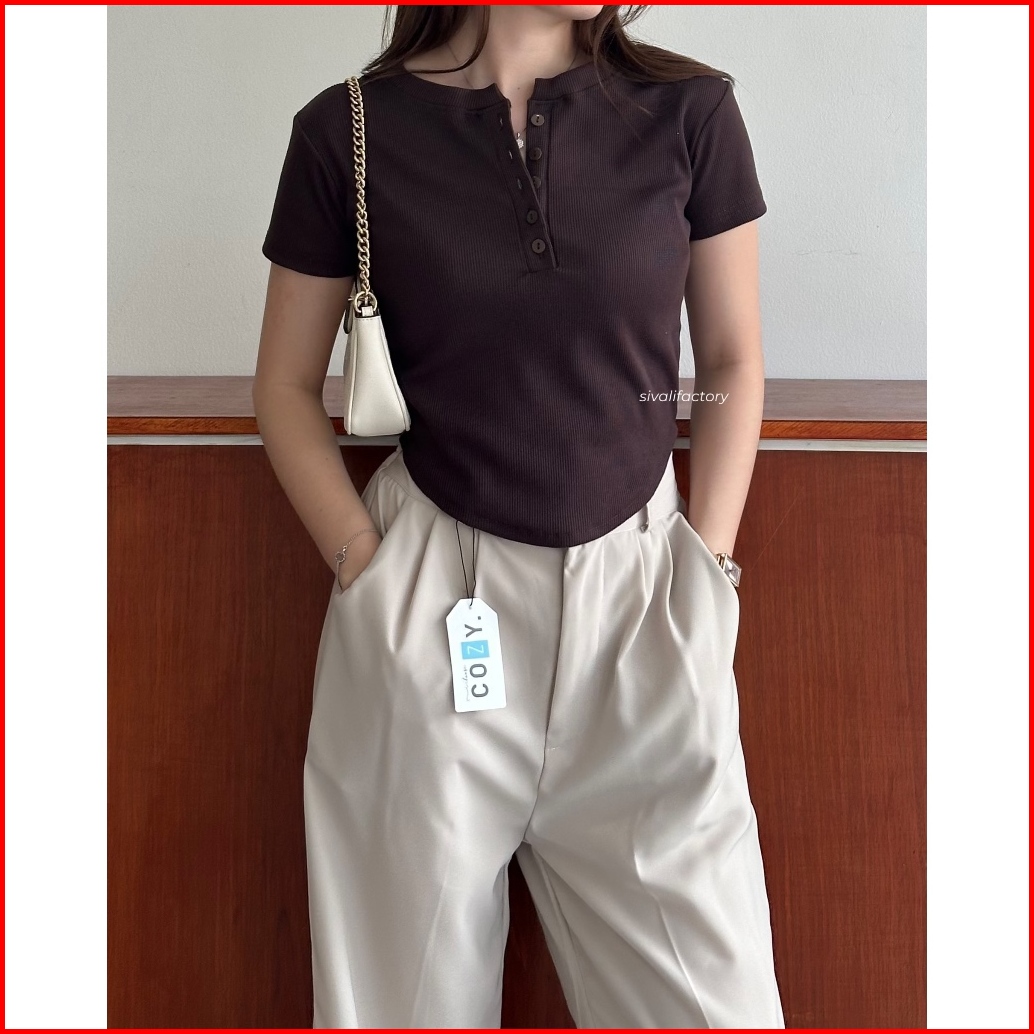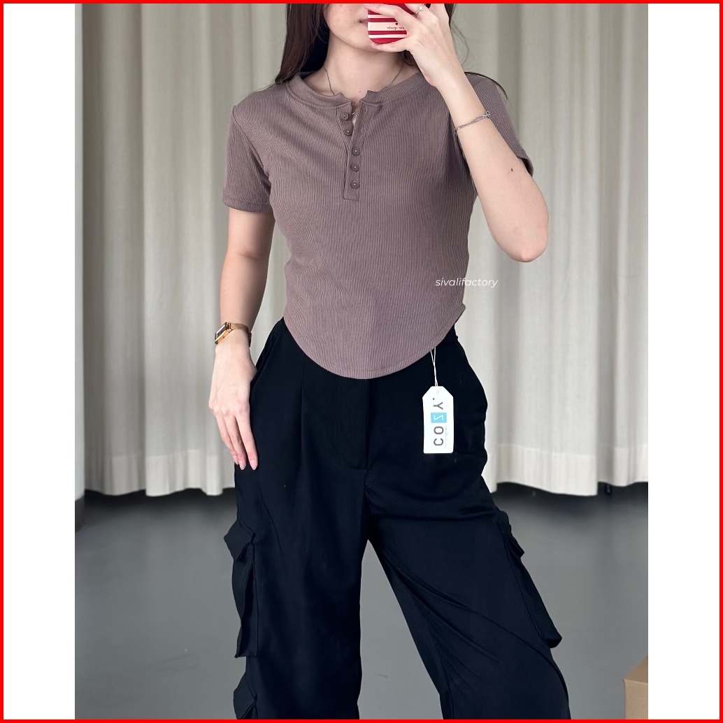 Sivali Thea Top - Atasan Crop Knit Wanita - Baju Rajut Lengan Pendek
