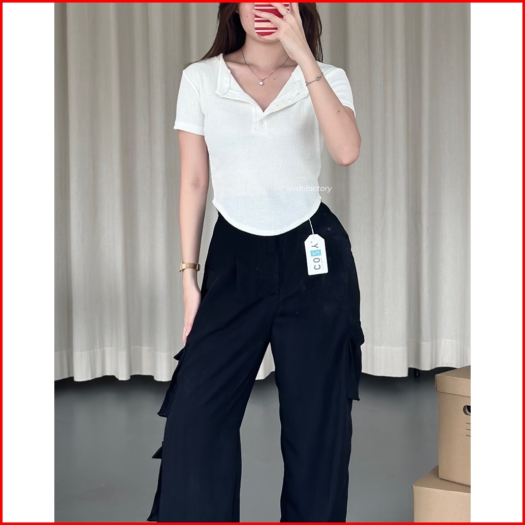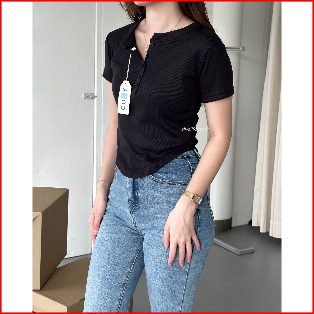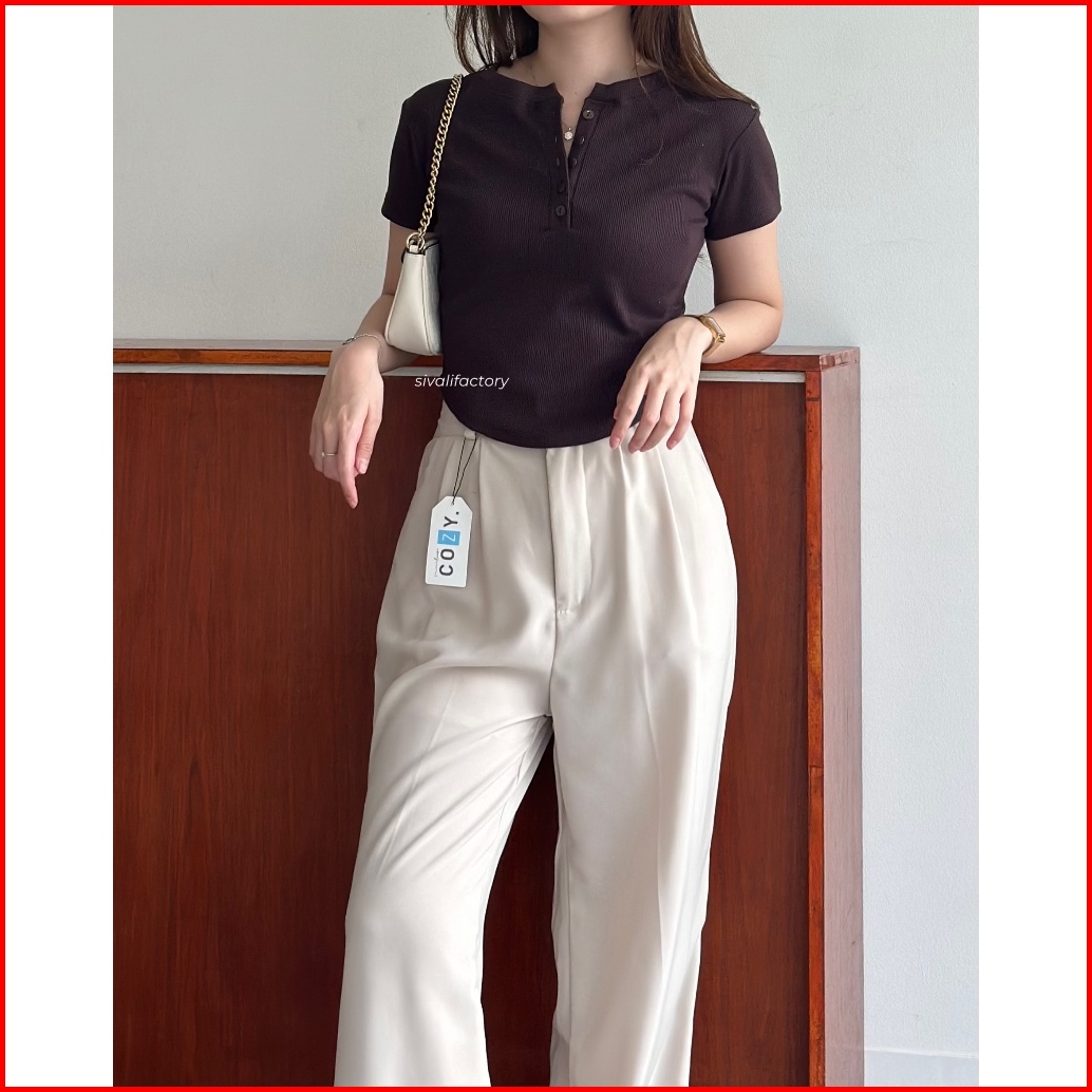 Sivali Thea Top - Atasan Crop Knit Wanita - Baju Rajut Lengan Pendek