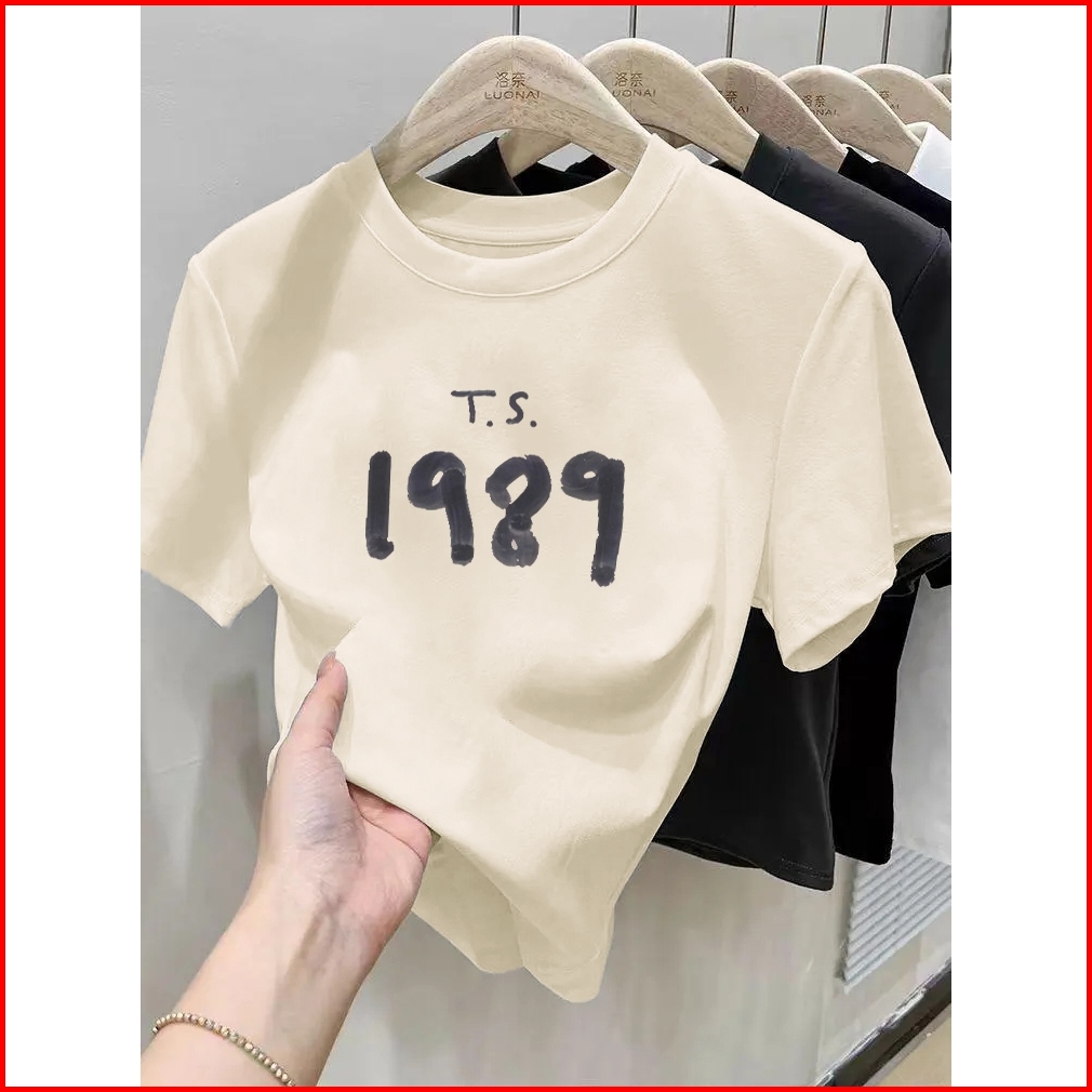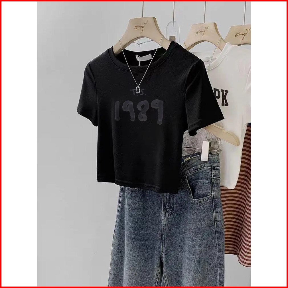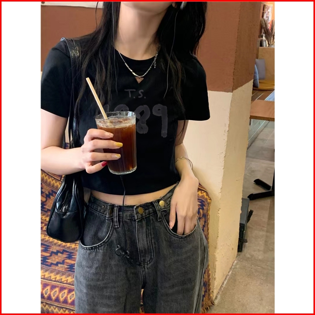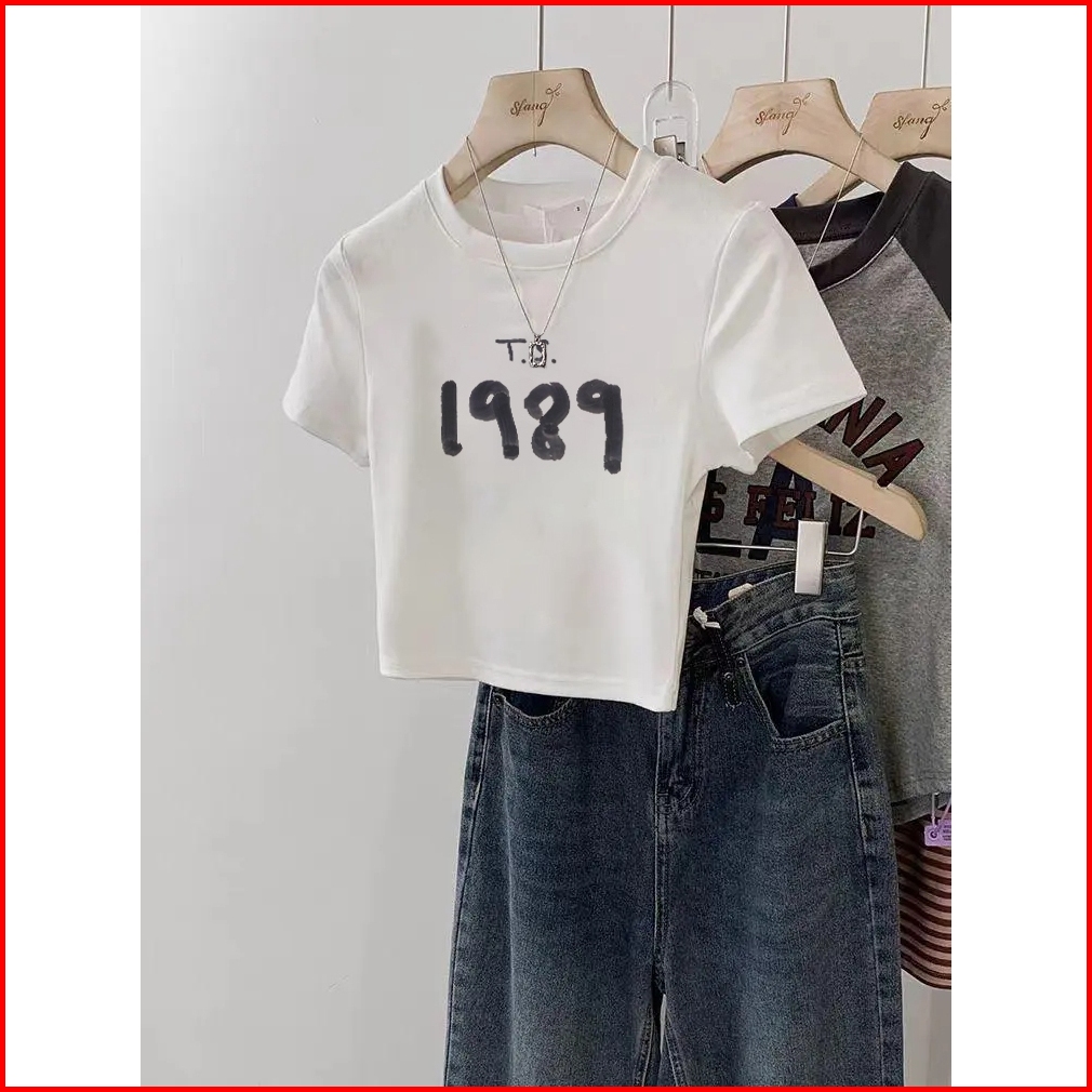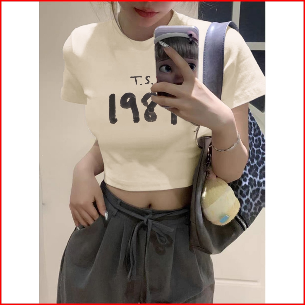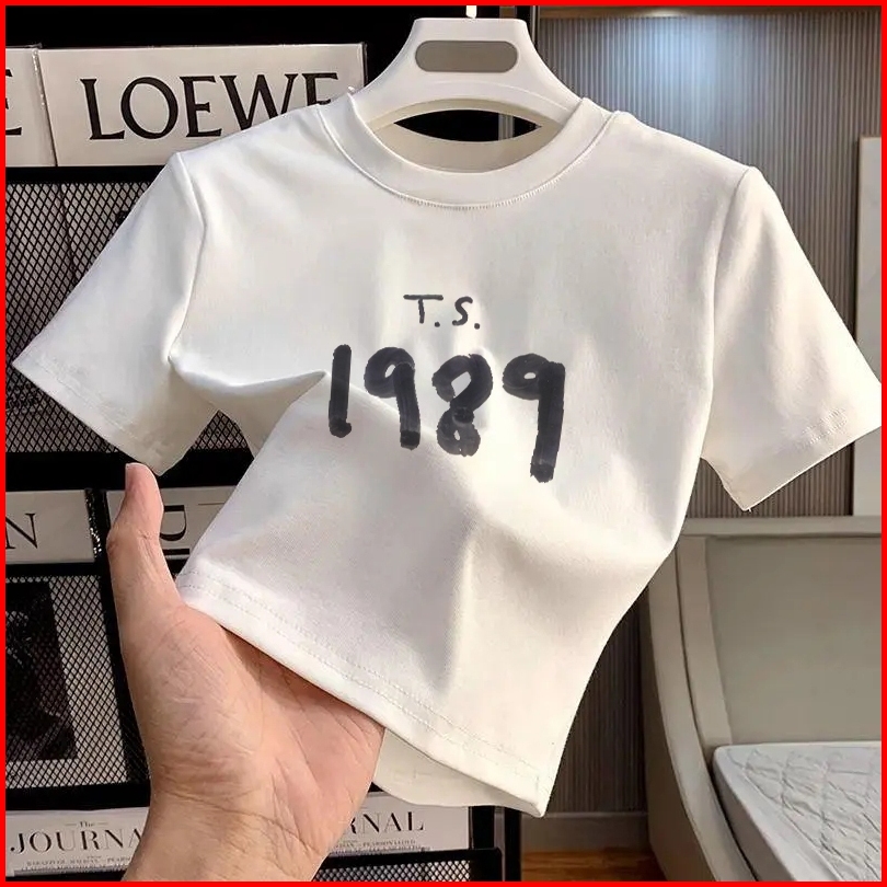Xiaozhainv Baju Kaos Crop Top Wanita Korea Lengan Pendek Kaos Wanita 1989 Taylor Swift The Eras Kaos Wanita Kekinian