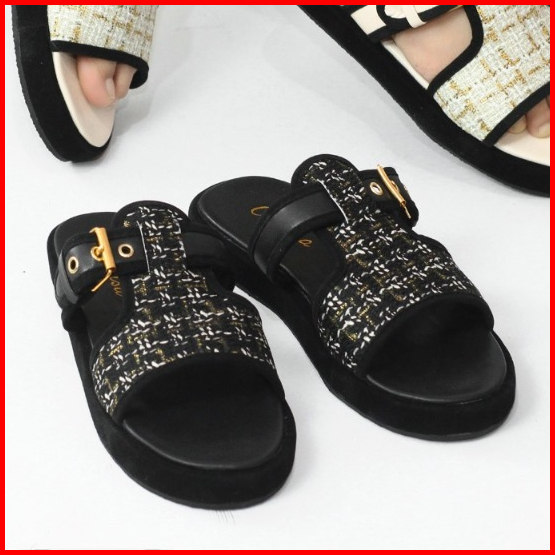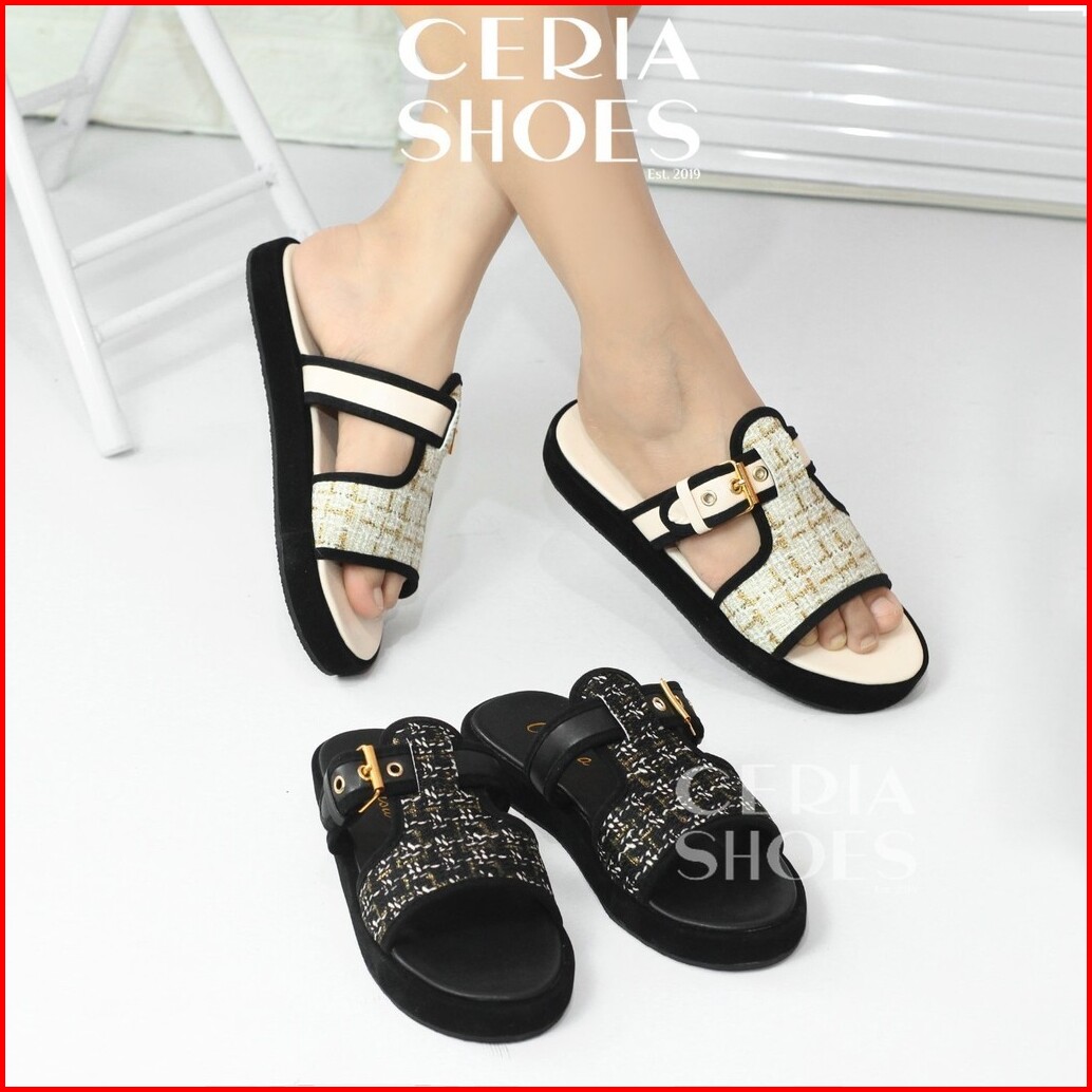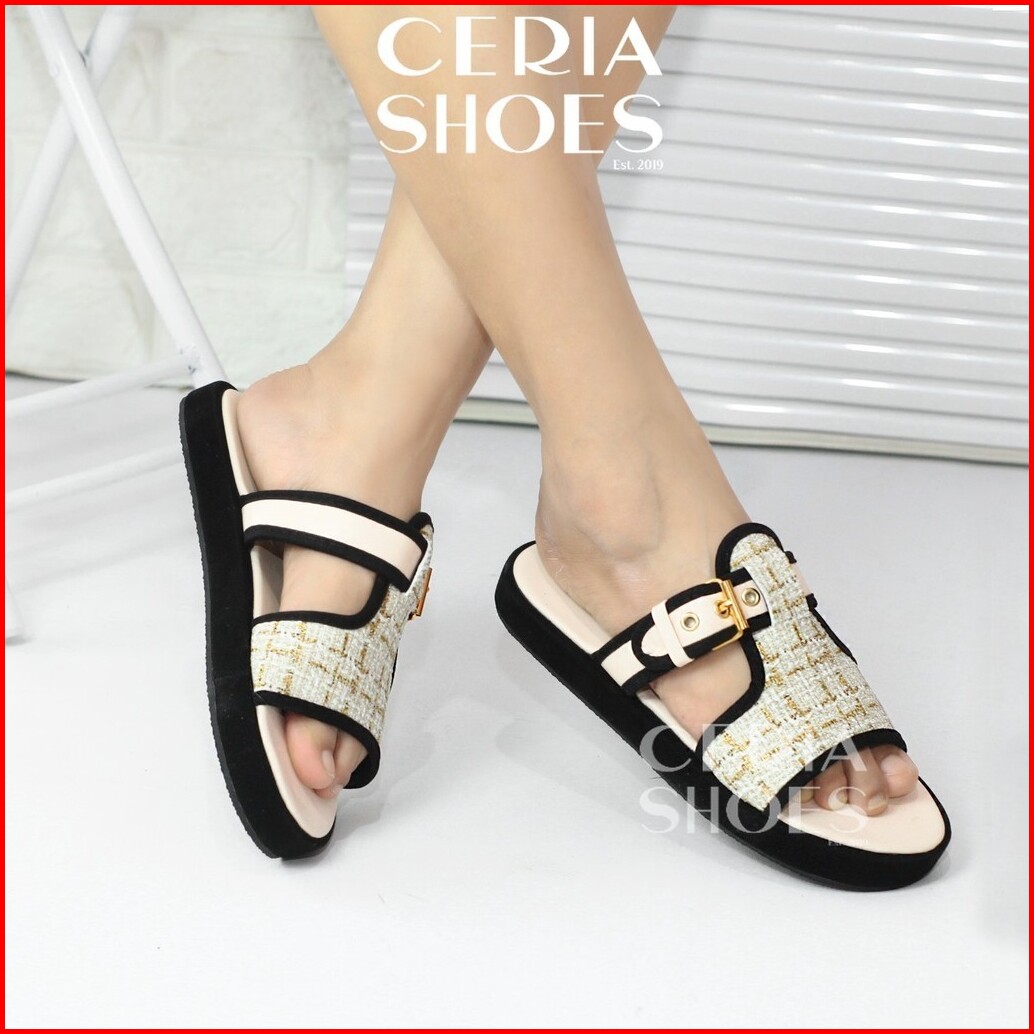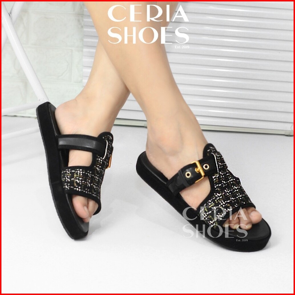 Sandal Platform Wanita Tali Gesper Motif Rajut Clarisa Cr
