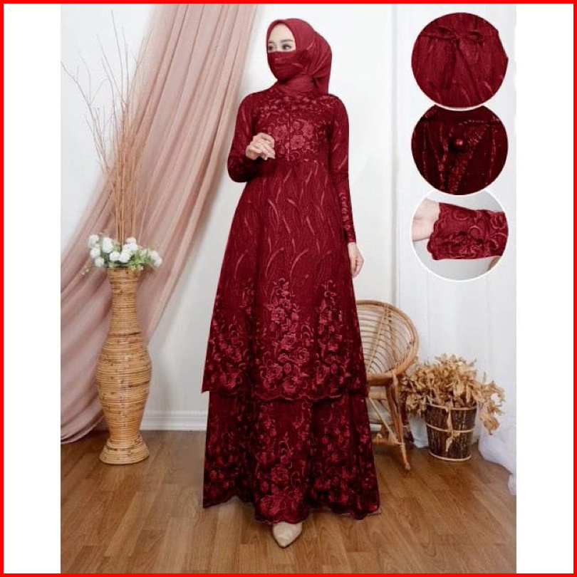 Maxi Vira M L Xl Xxl Xxxl Gamis Susun Full Brukat Keliling Gamis Kondangan Dress Busui Muslim