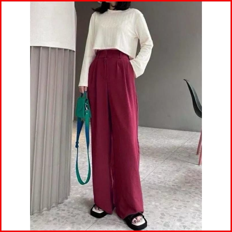 Loose Pants 332 Trousers Wanita Celana Anti Kusut Celana Kulot Wanita Celana Kantor Casual