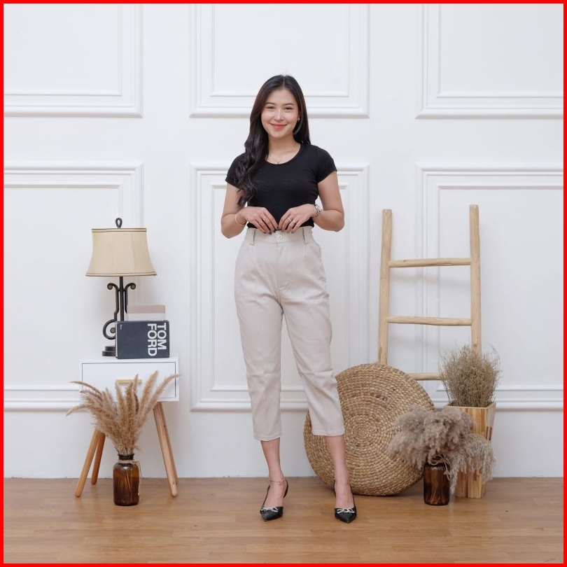 Celana Wanita Termurah Haigh Waist Katun Twill Strech Santai Skinny Office Pants
