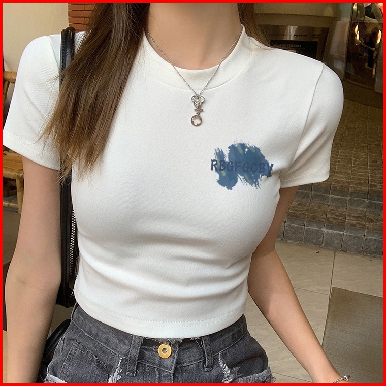 Misco T-shirt Crop Top Y2k Lengan Pendek Baju Kaos Crop Wanita Pola Korea Rbgfgcbv Baju Atasan Wanita Terbaru Croptee Pu