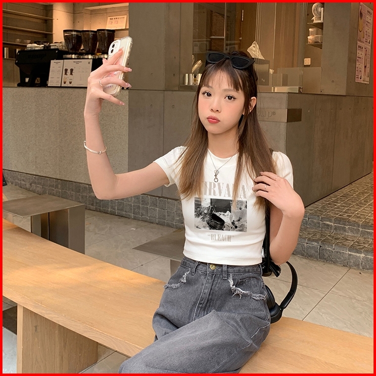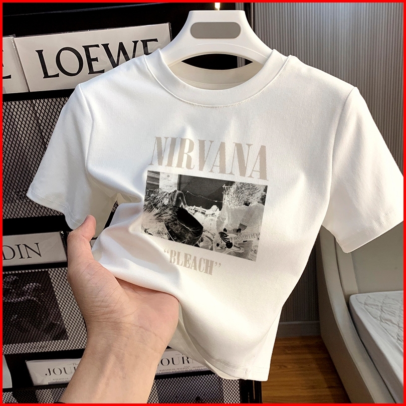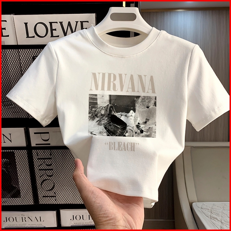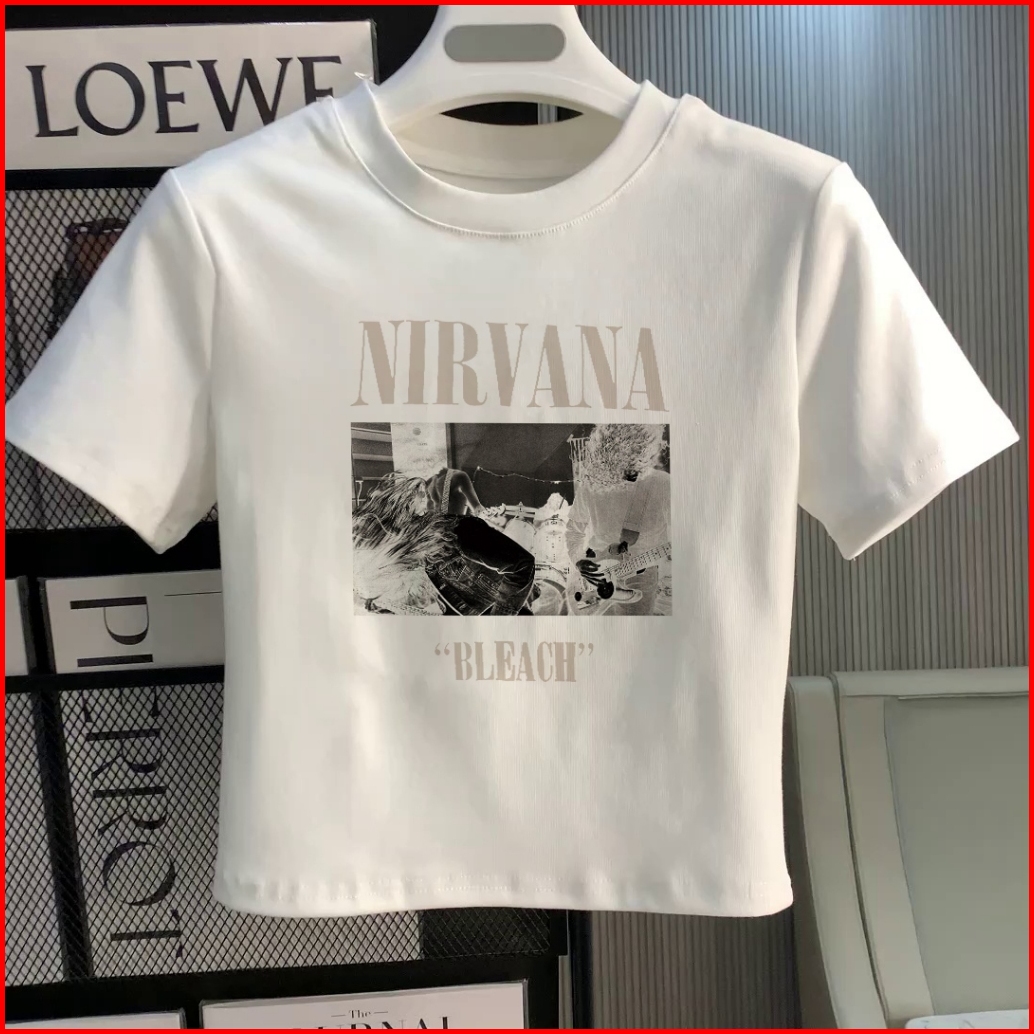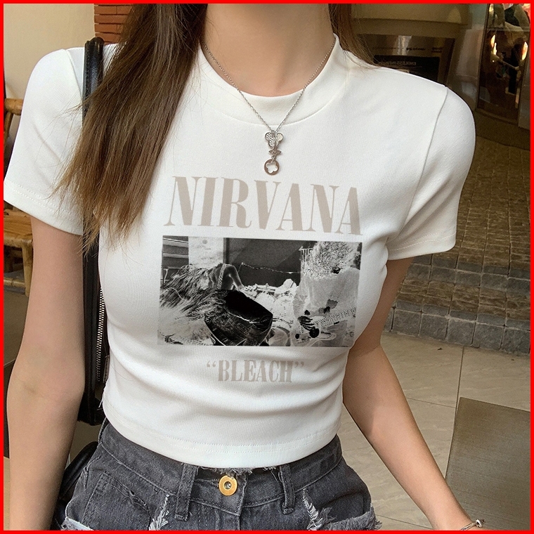 Misco T-shirt Crop Top Y2k Lengan Pendek Kaos Crop Wanita Nirvana Bleach Baju Atasan Wanita Terbaru Croptee Putih Korea
