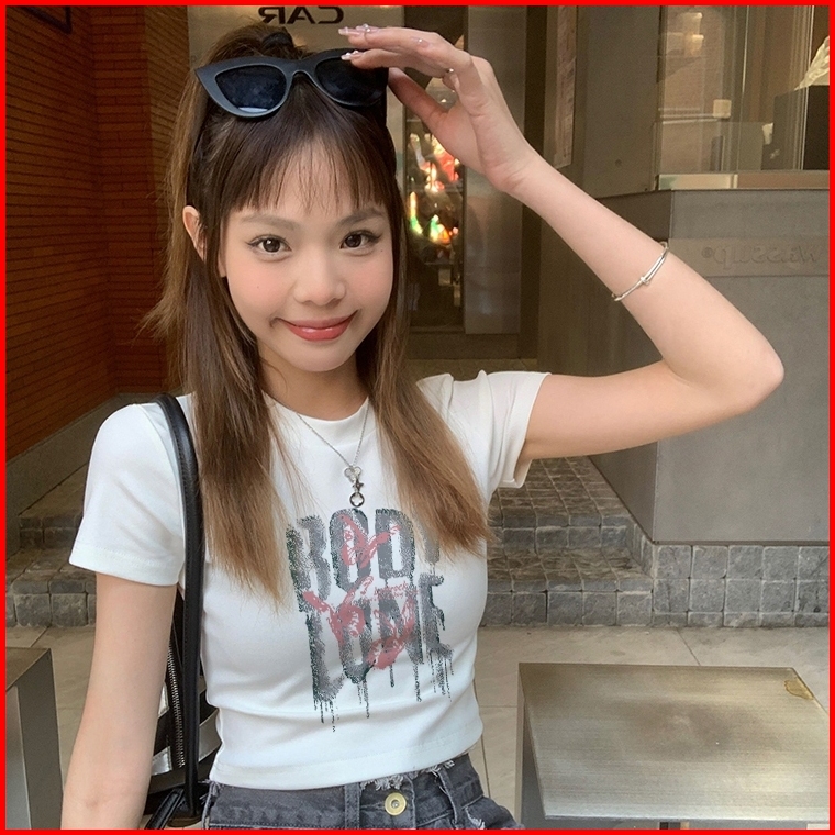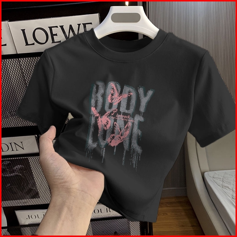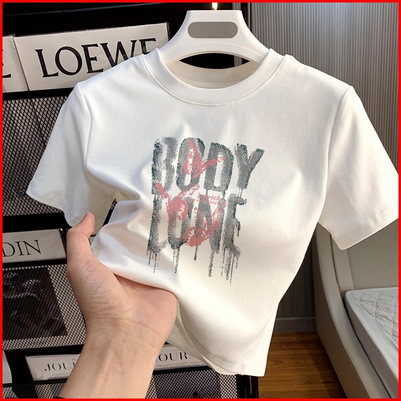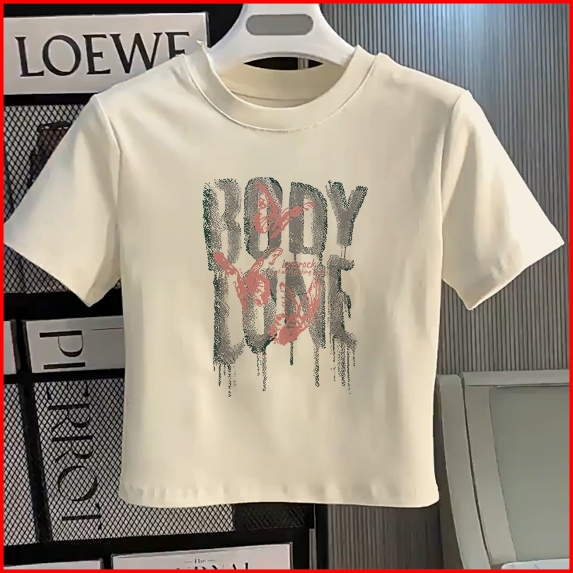 Yiyoyi T-shirt Crop Top Tebal Y2k Lengan Pendek Baju Kaos Crop Wanita Baju Atasan Wanita Terbaru Croptee Putih Korea
