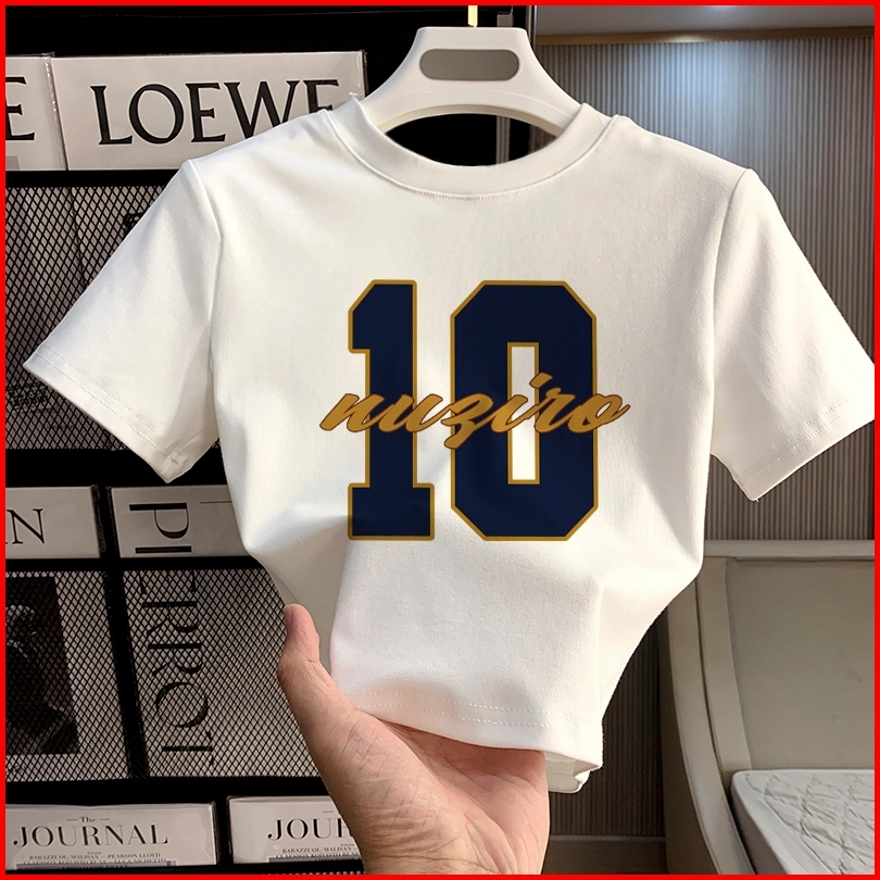 Misco T-shirt Crop Top Lengan Pendek Kaos Wanita Crop Top Nomor Sederhana 10 Kaus Crop Wanita Baju Atasan Wanita Terbaru