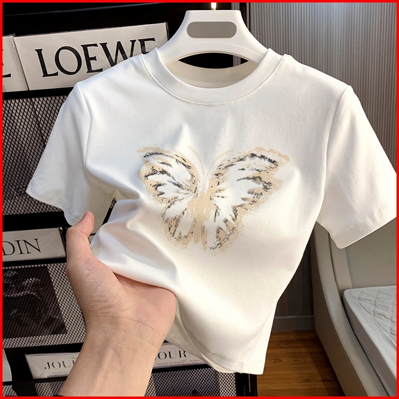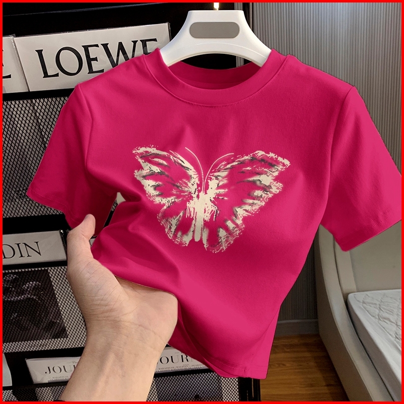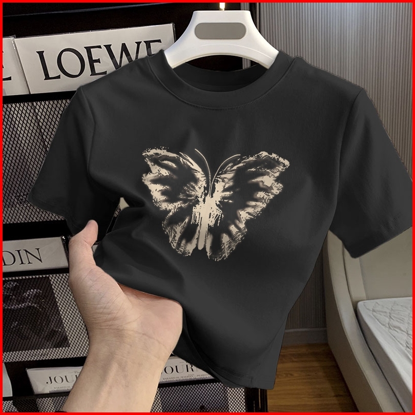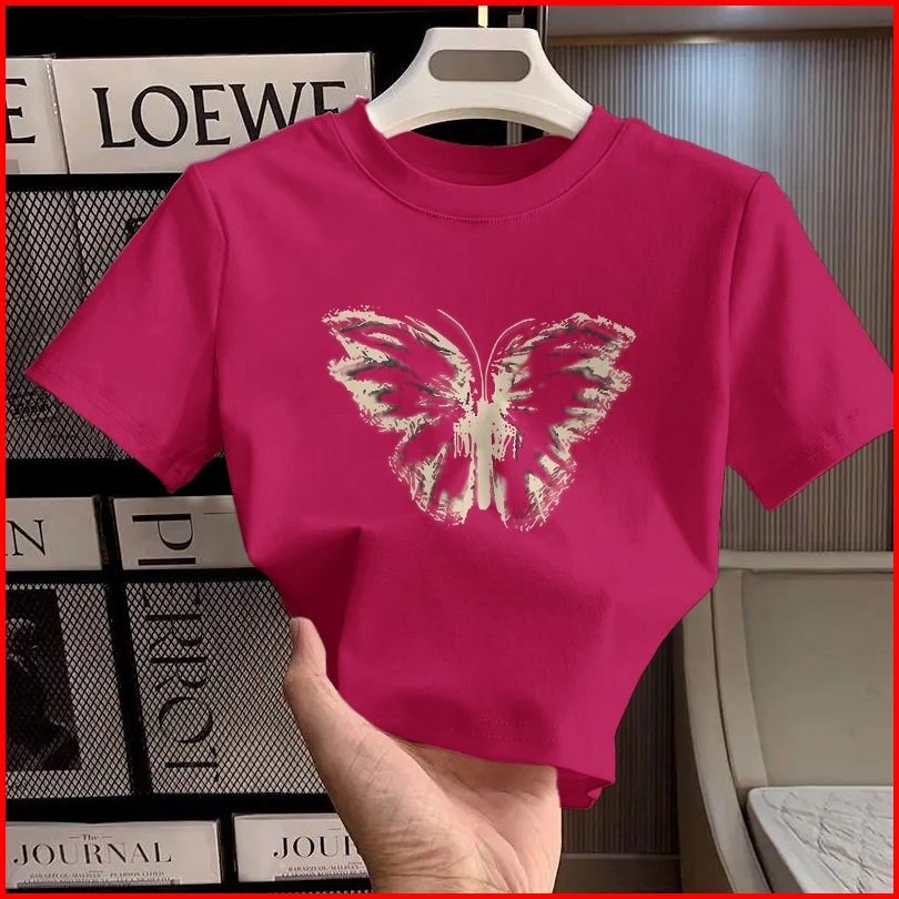 Misco T-shirt Crop Top Lengan Pendek Kaos Wanita Crop Top Simple Butterfly Kaus Crop Wanita Baju Atasan Wanita Terbaru F
