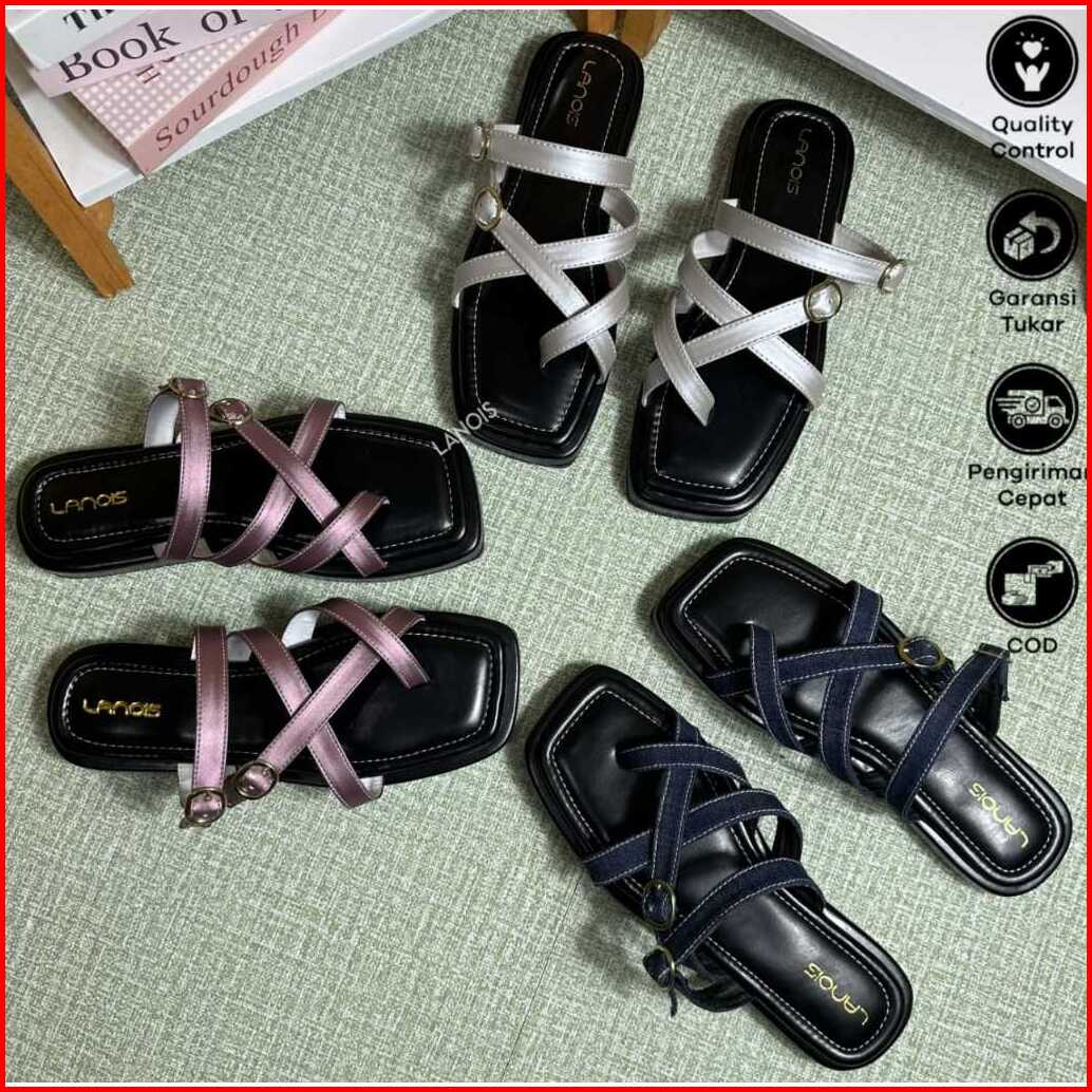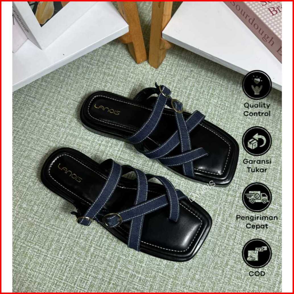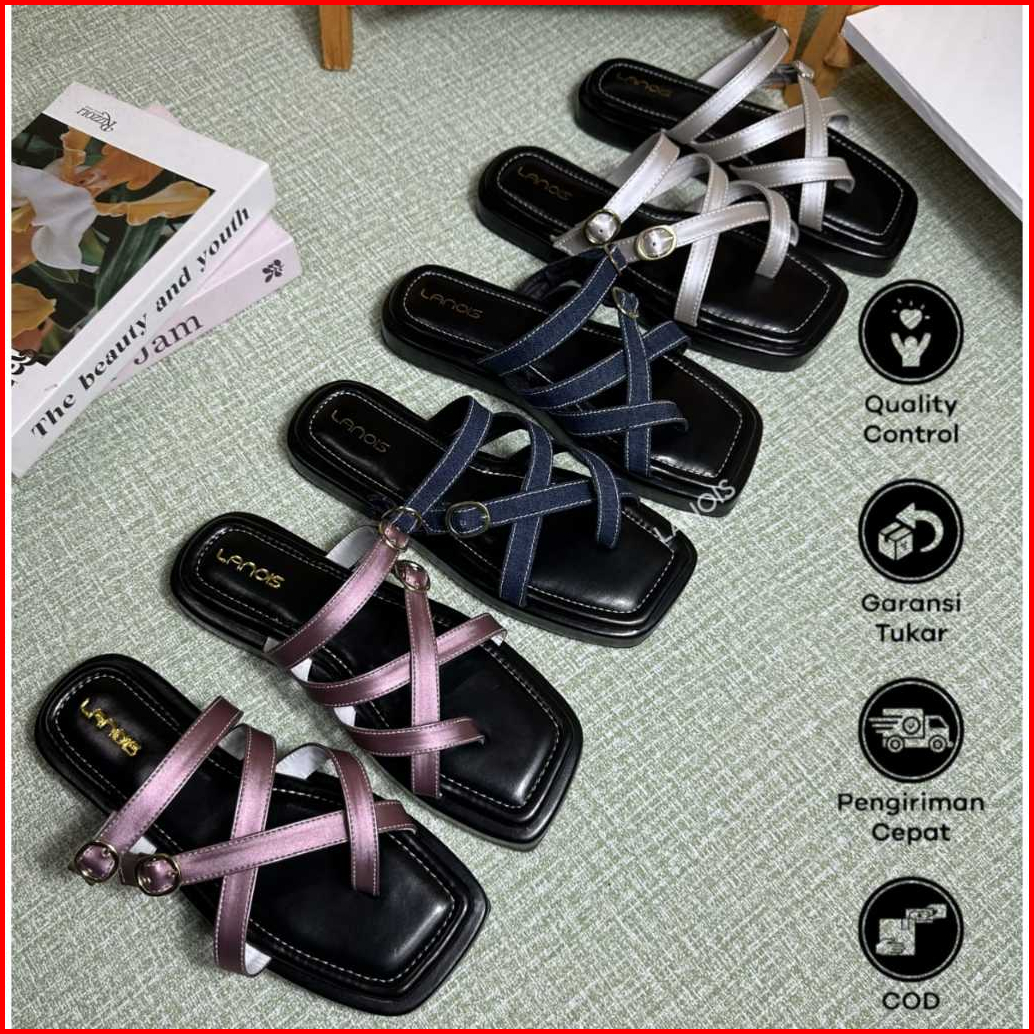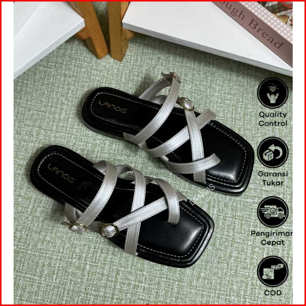 Lanois Sendal Wanita Platform Sandal Tali Gesper Wanita 3 Cm Elegant Kekinian Full Busa Empuk V2