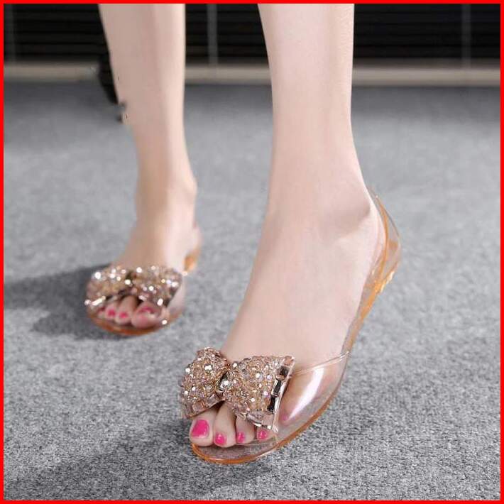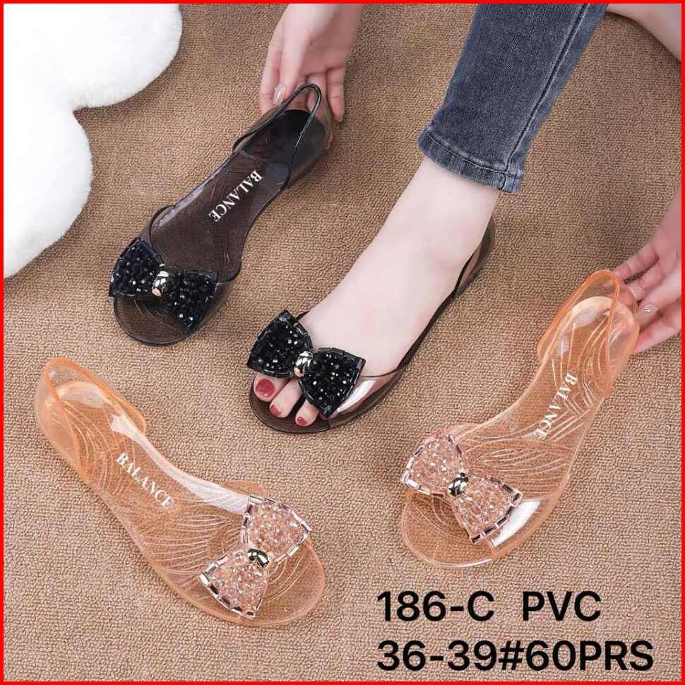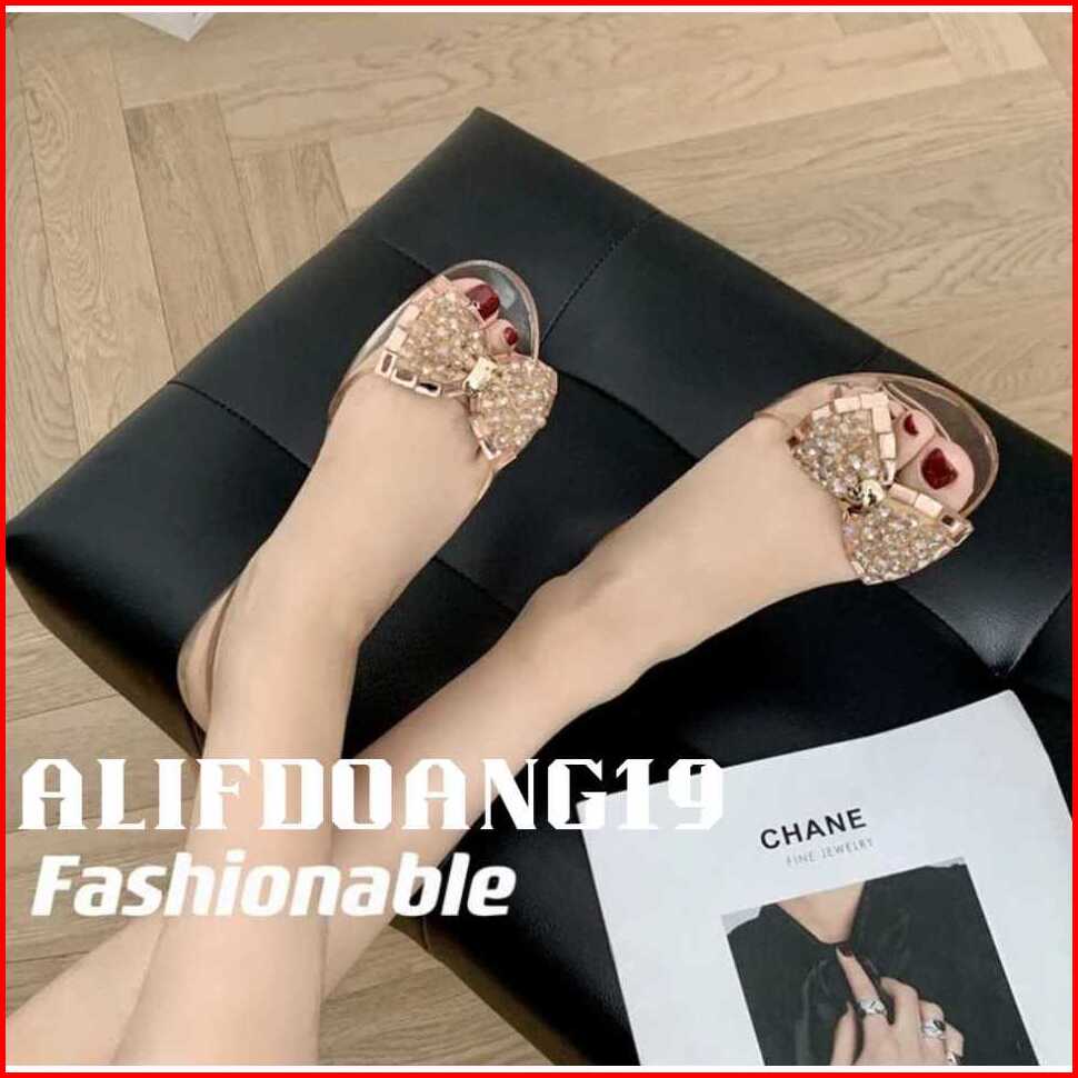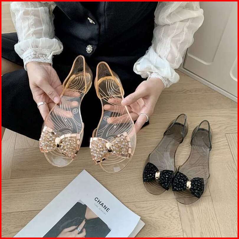Sandal Flatshoes Wanita Transparan Variasi Pita 186-c 36-39 Sandal Wanita Import Terbaru