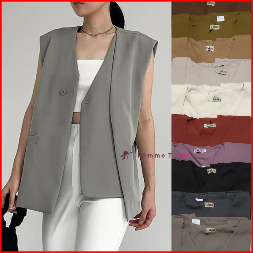Hanny Vest Outer Rompi Wanita Atasan Luaran Oversized Korean Style Sleeveless Top