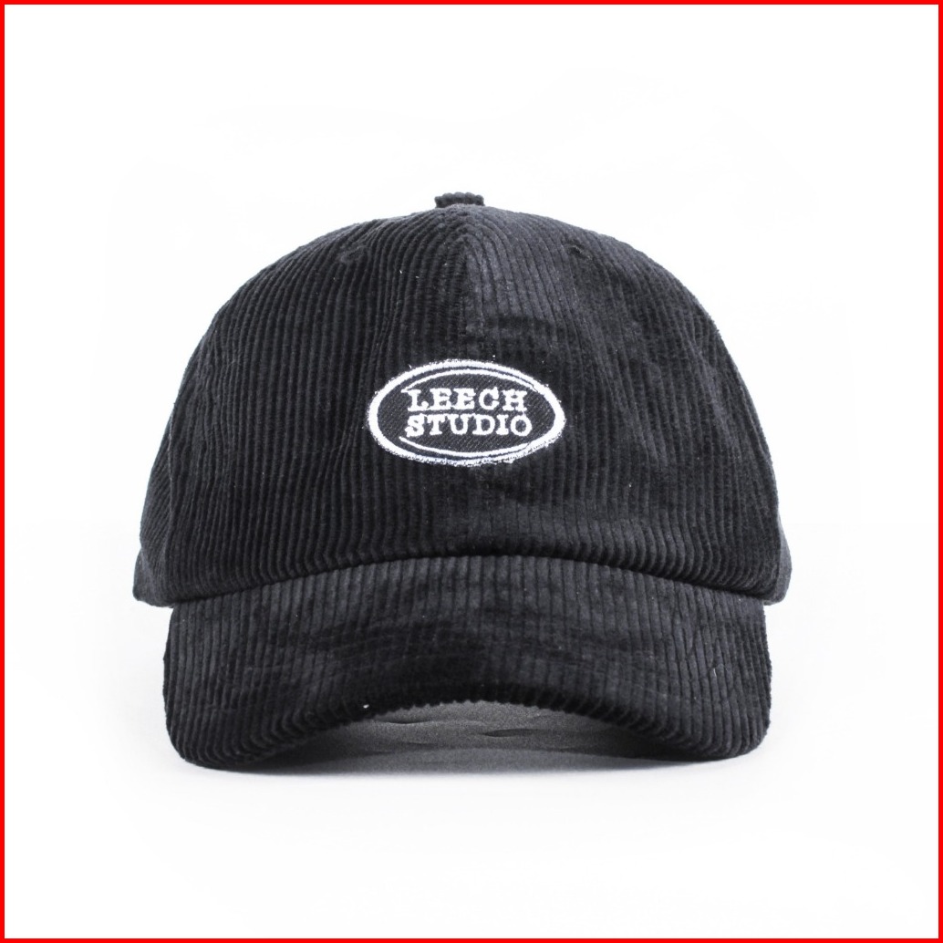 Leech.co Caps - Meteor Corduroy Black Polo Cap Topi Pria Topi Baseball Topi Corduroy