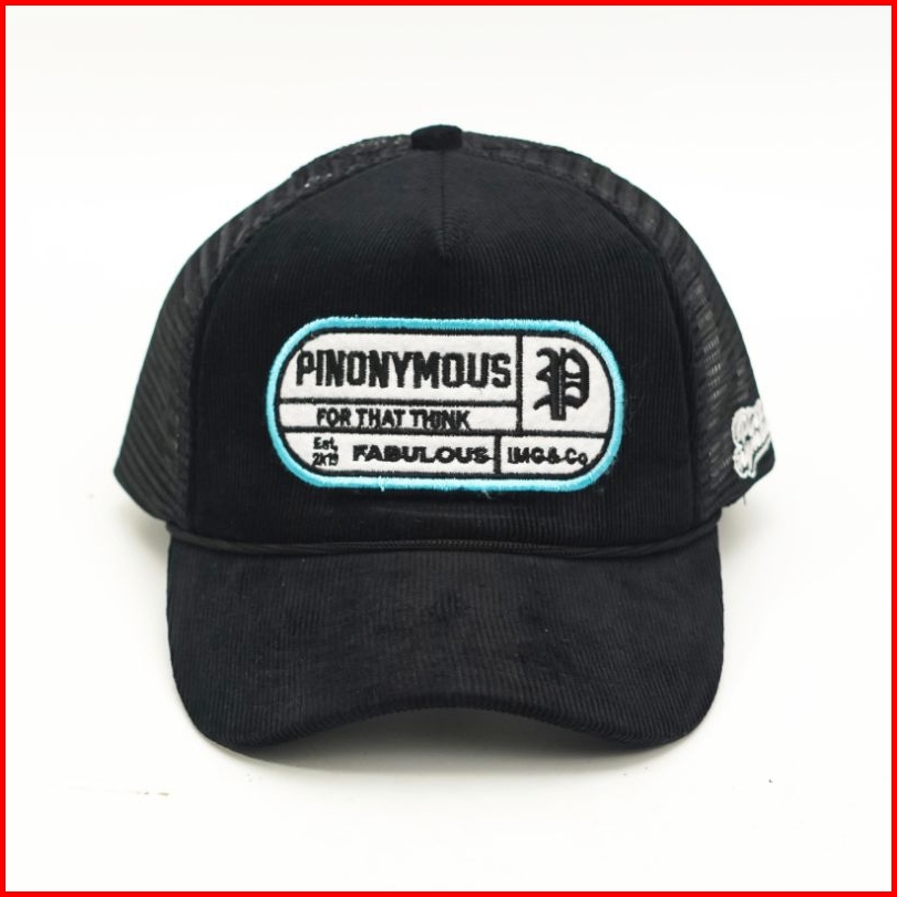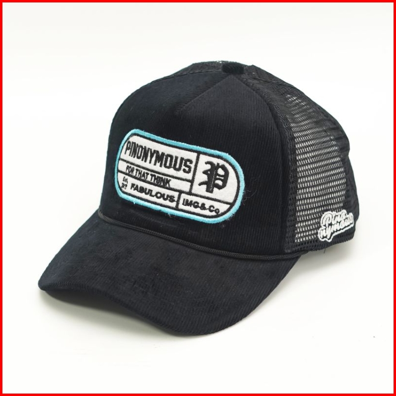 Pinonymous Topi Trucker Hat Corduroy Hitam Topi Pria Jaring Dewasa Original