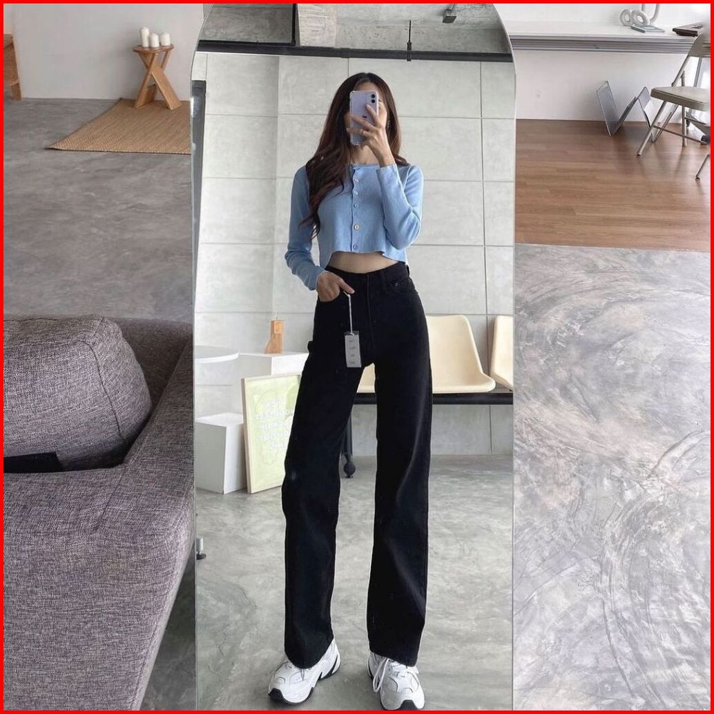 Highwaist Loose Jeans Celana Panjang Wanita Jeans Highwaist Kulot Jeans Hangover