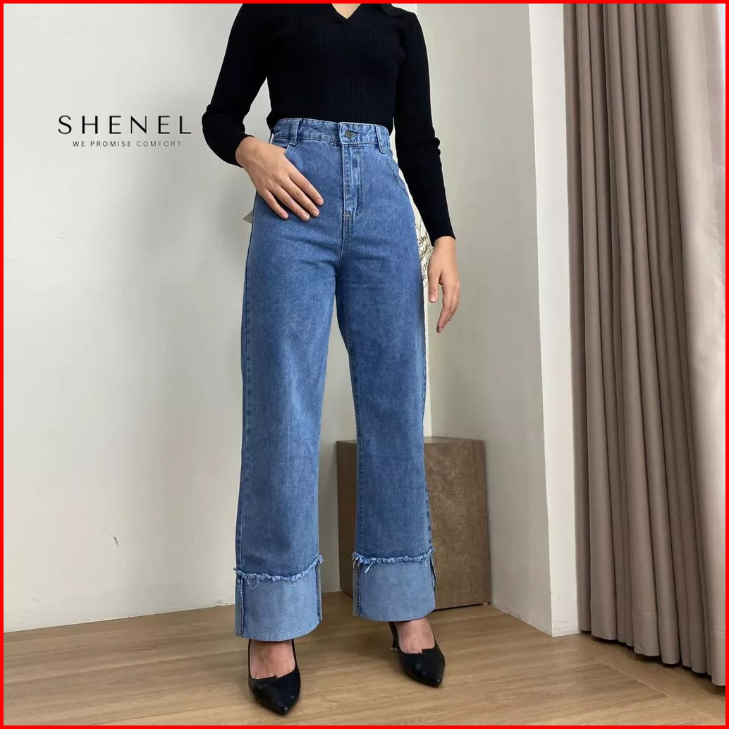 Shenel Aisha Celana Jeans 3104 Wanita High Waist Jeans Kulot High Waist Jeans Boyfriend Import Jeans Panjang