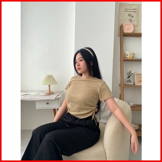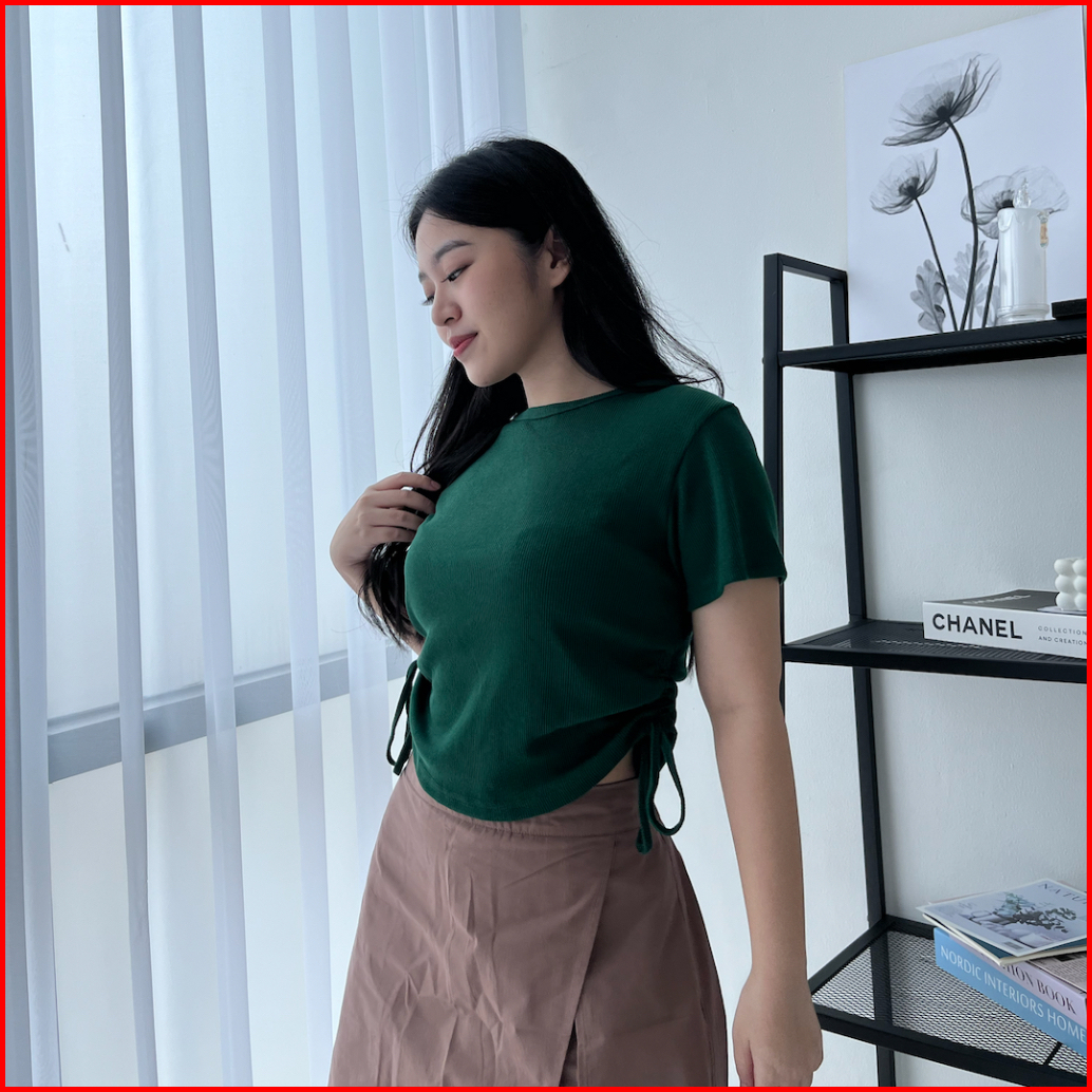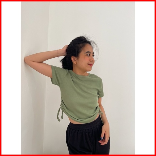 Somethingsweet - Sesile Top L Crop Top Tali Serut L Rib Knit Premium L Kamisol Wanita L Tank Top L Rajut Premium