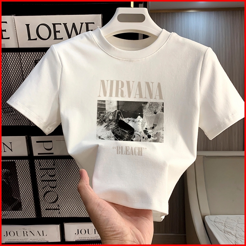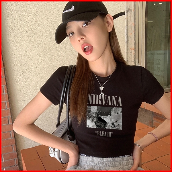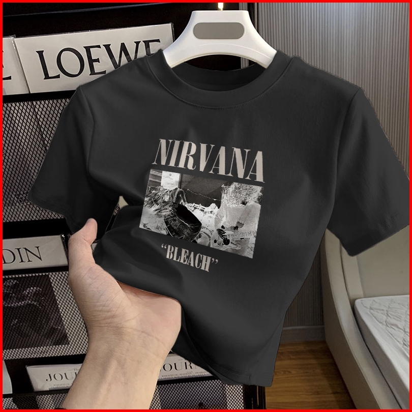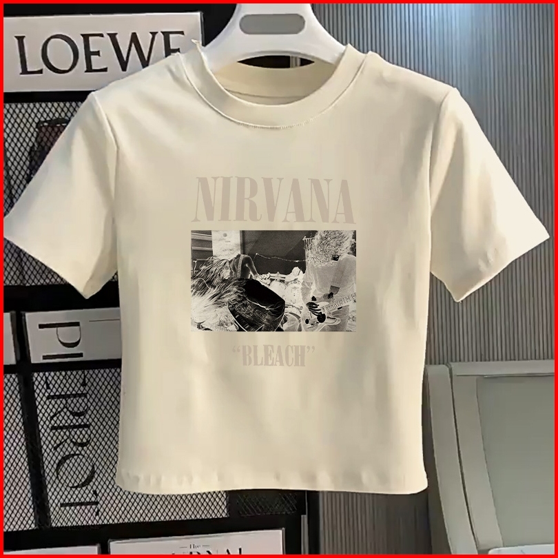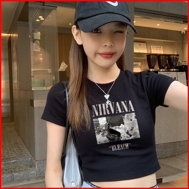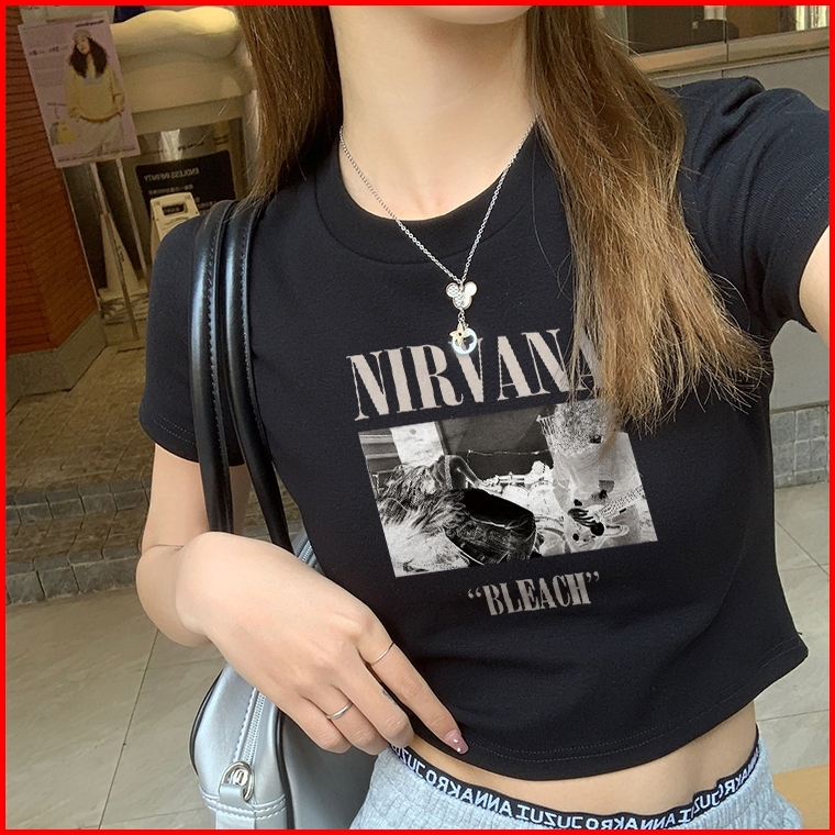 Misco T-shirt Crop Top Tebal Y2k Lengan Pendek Baju Kaos Crop Wanita Nirvana Bleach Baju Atasan Wanita Terbaru Croptee H