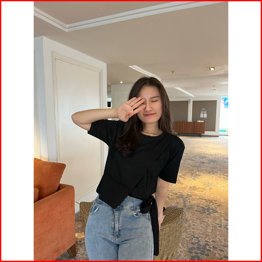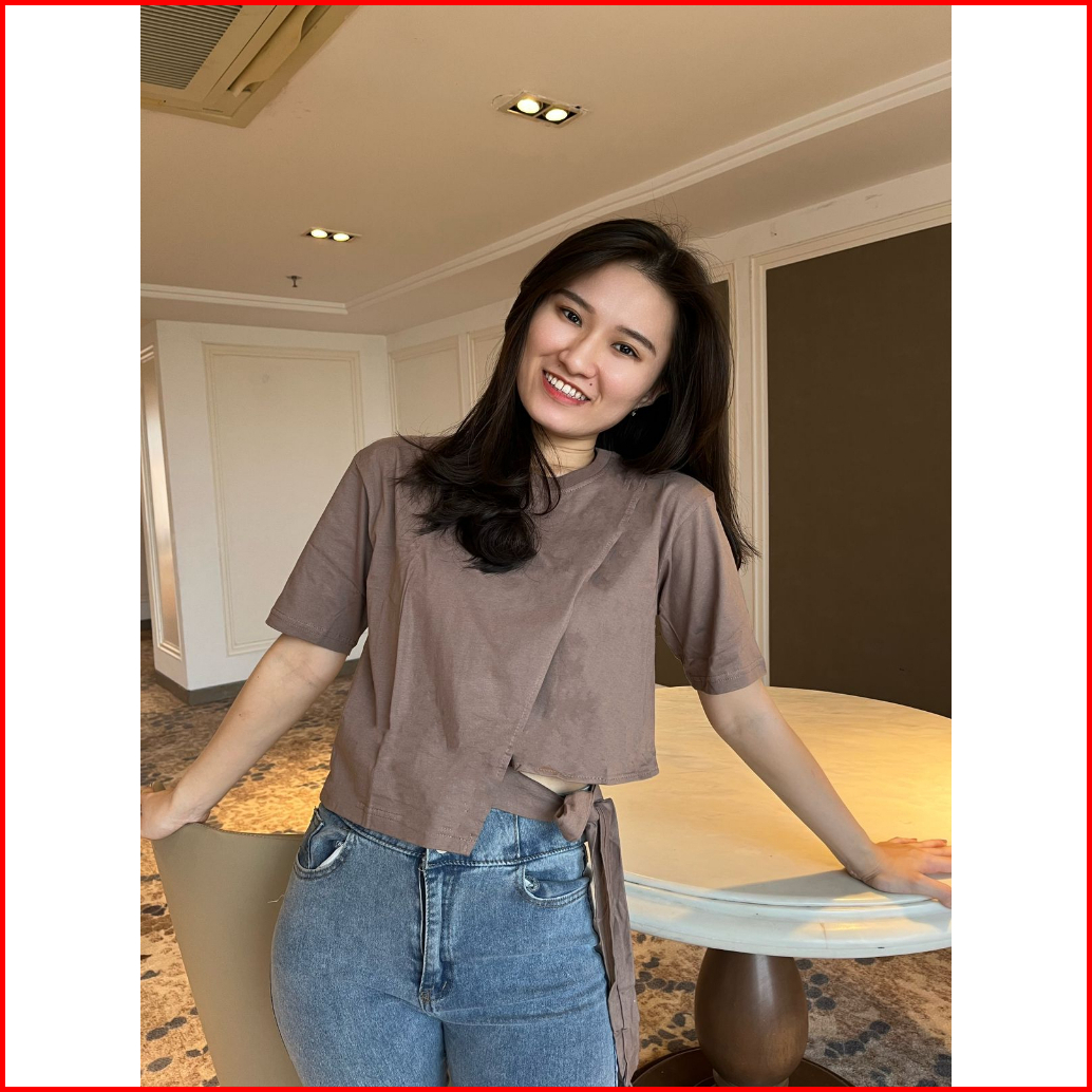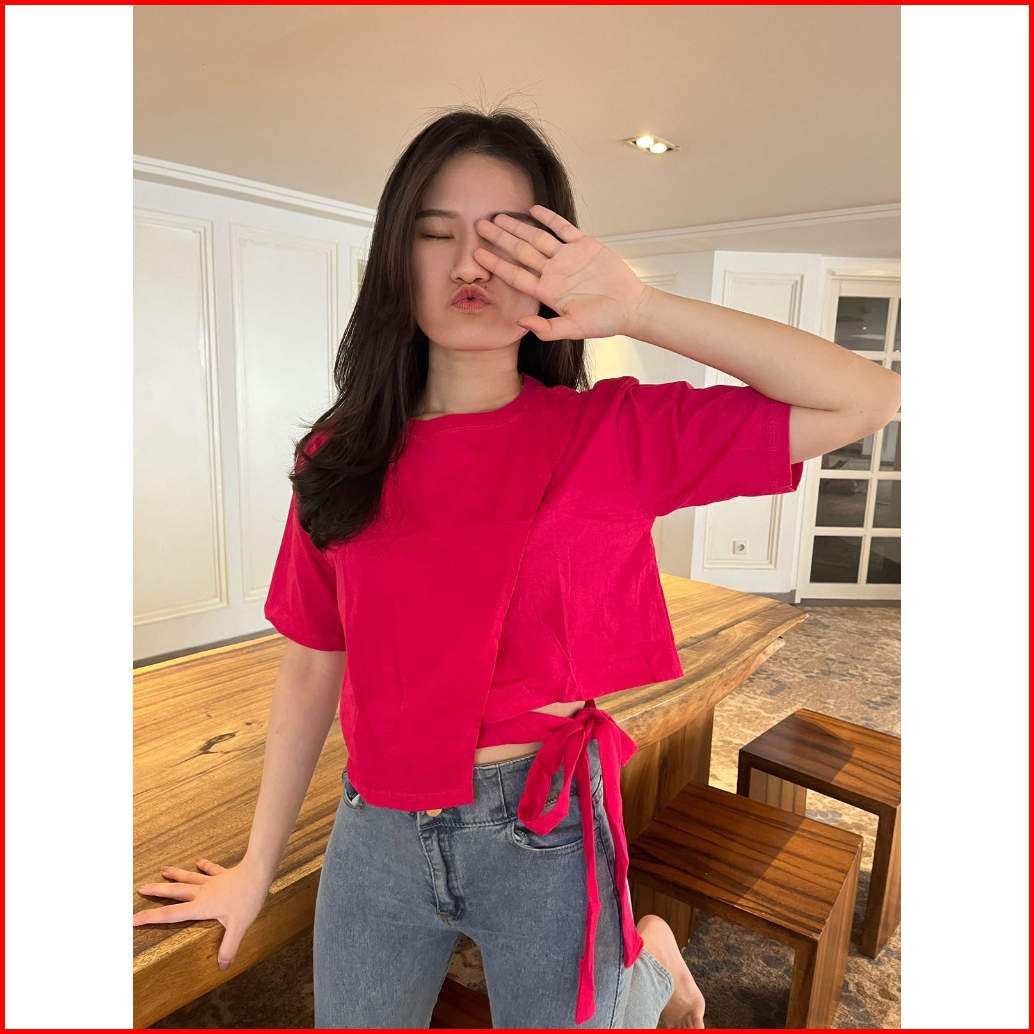 Terbaru Korean Crop Top Atasan Wanita Korea Tali Samping Bahan Cotton Combed