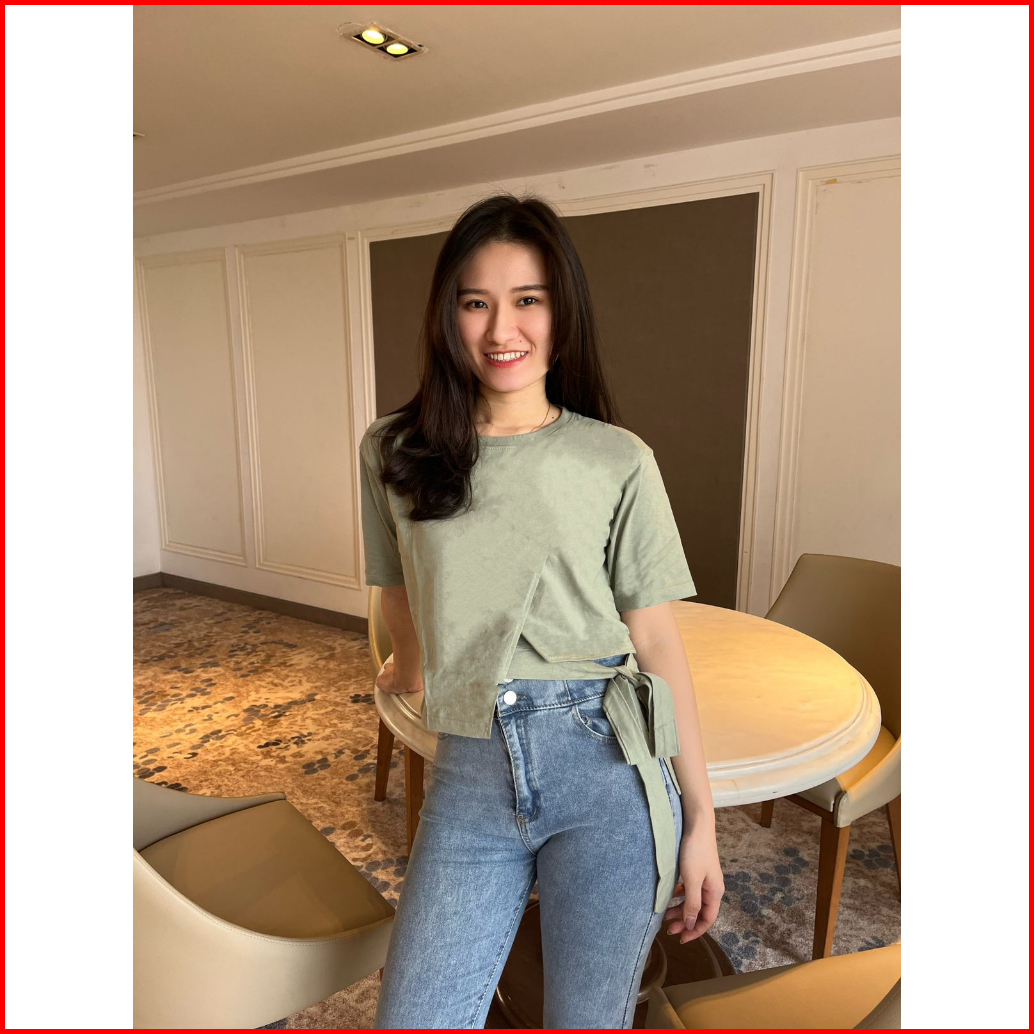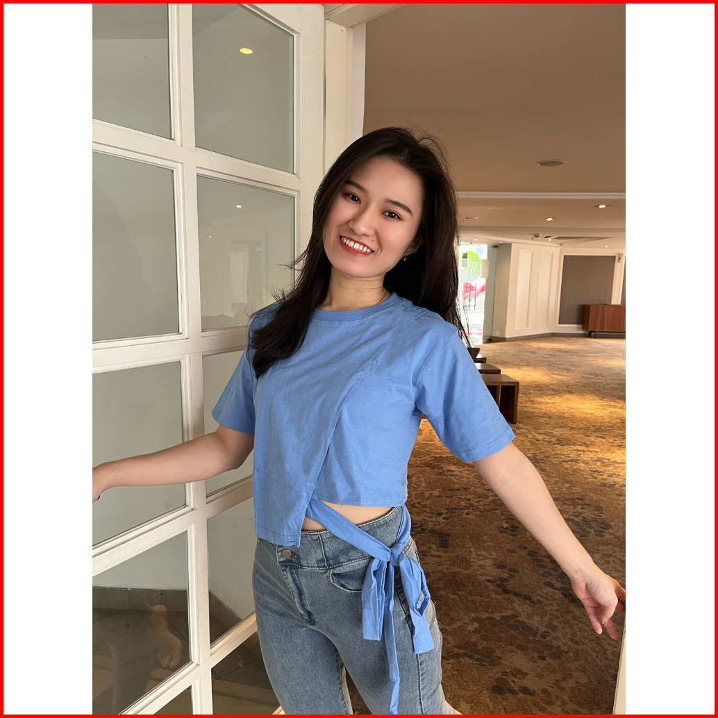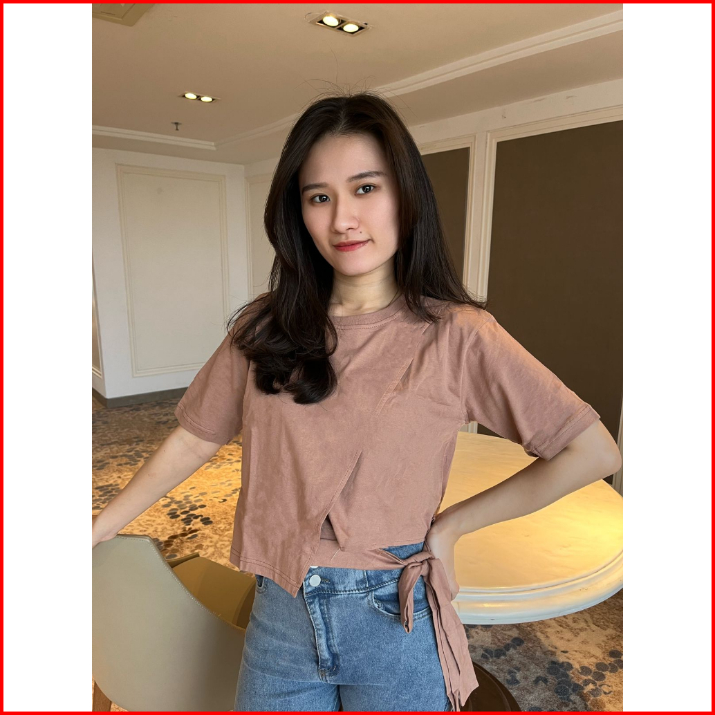 Terbaru Korean Crop Top Atasan Wanita Korea Tali Samping Bahan Cotton Combed