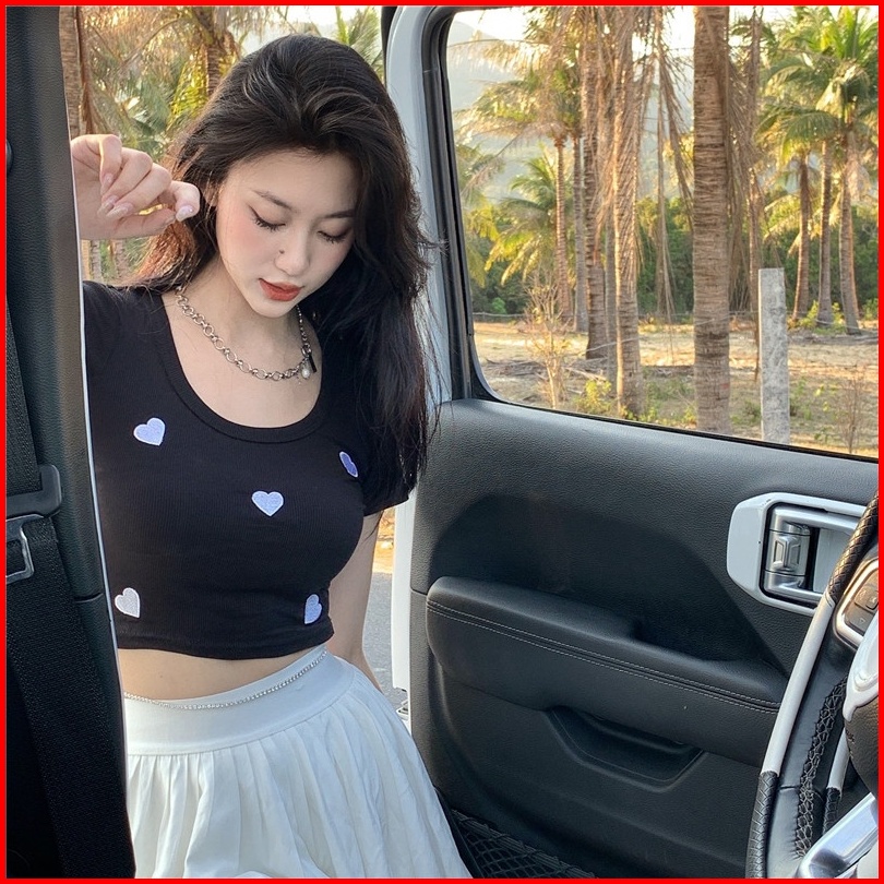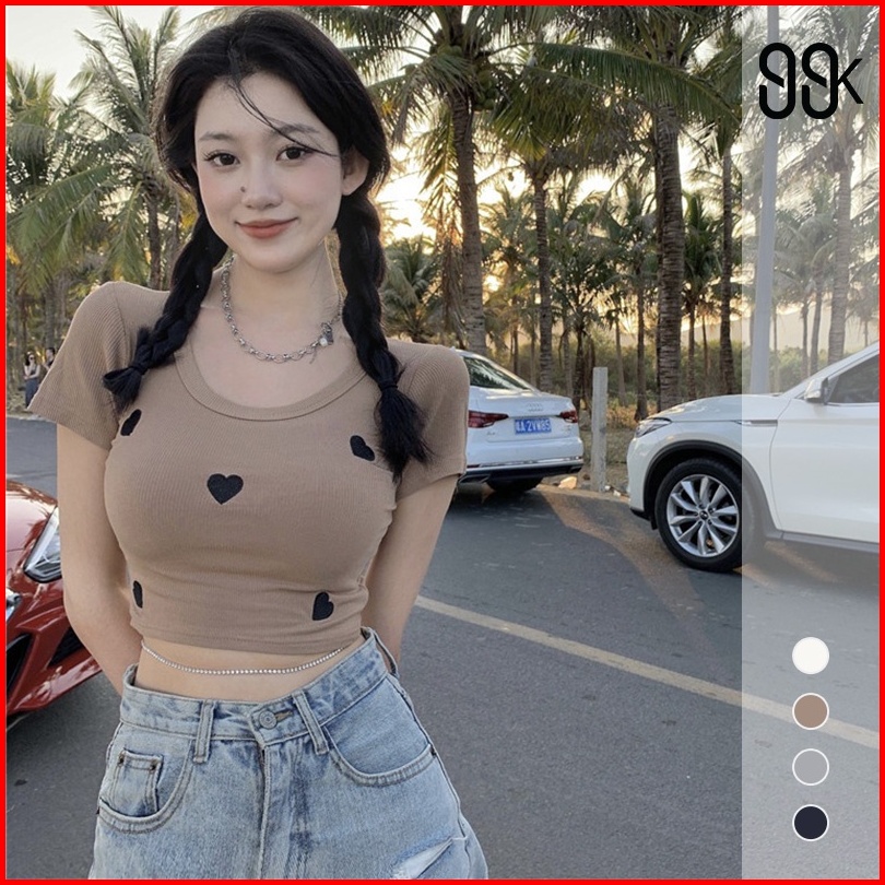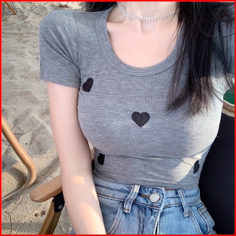 Summer Short Sleeve Slim Motif Love Crop T-shirt 2669 S M L