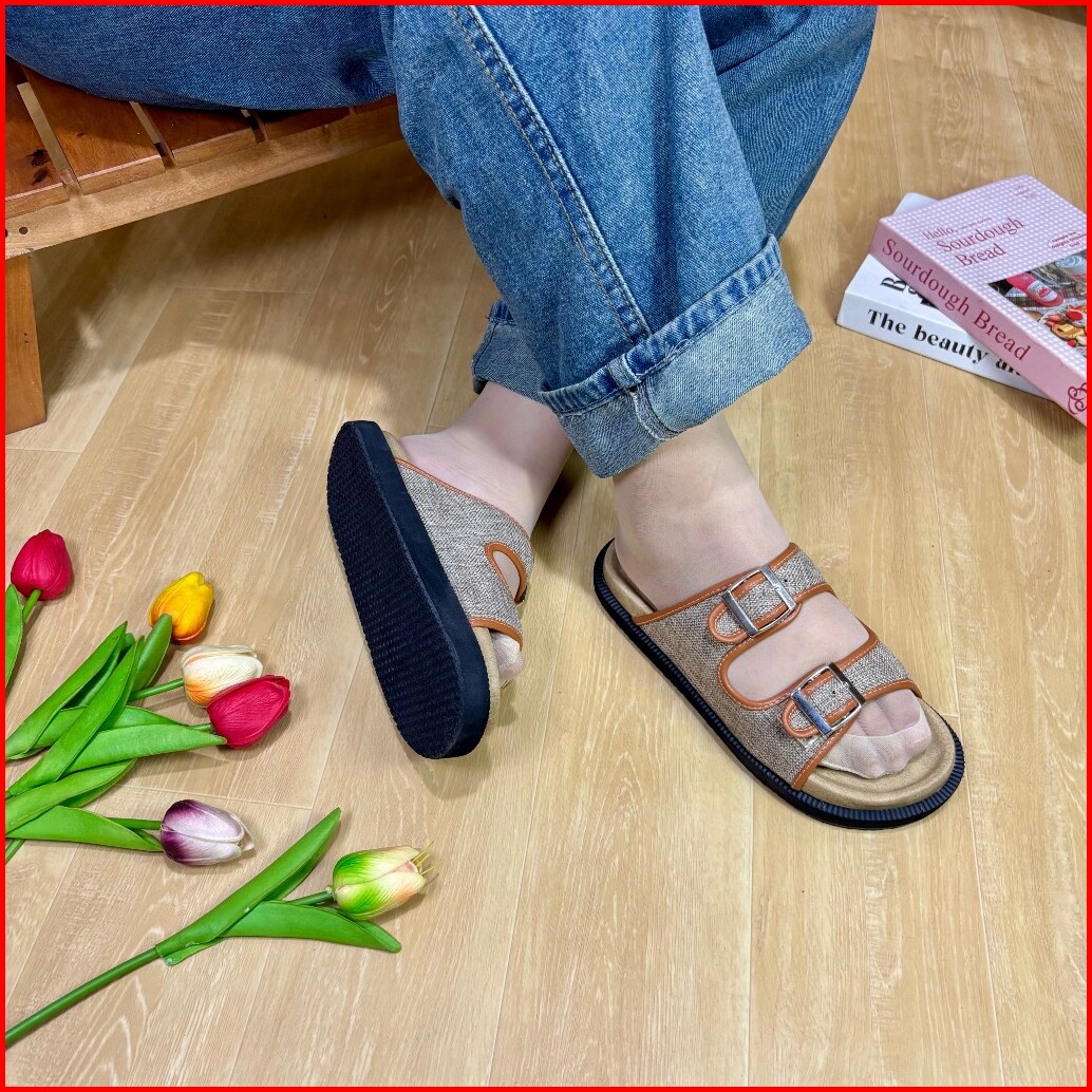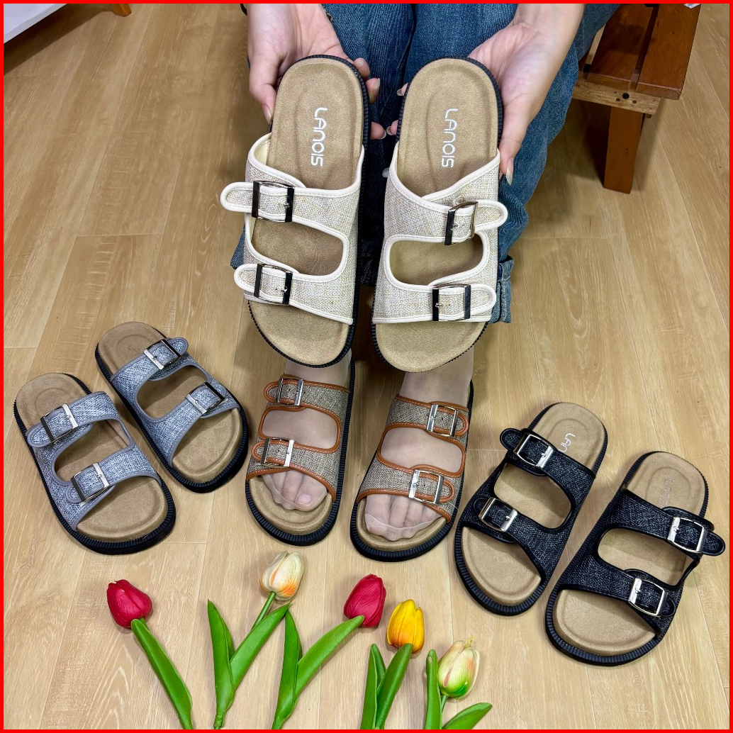 Lanois - Sepatu Sandal Wanita Selop Gesper Motif Rajut Canvas New Version