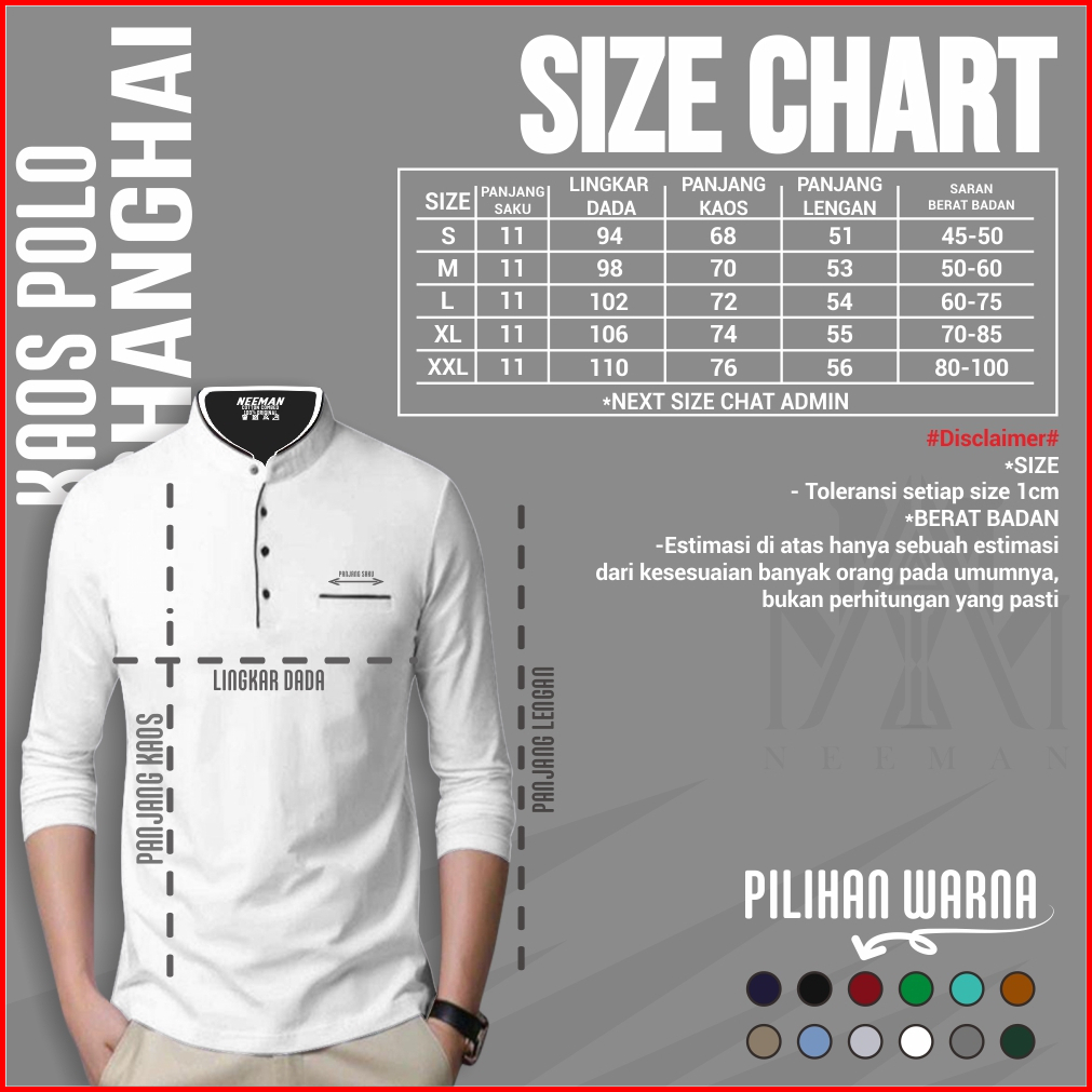 Kaos Polo Kerah Shanghai Saku Lengan Panjang