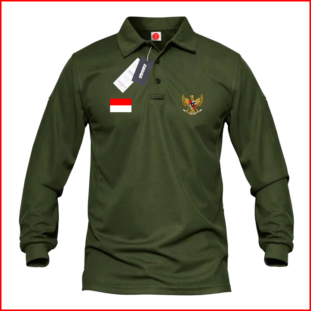 Zirdigo Kaos Polo Shirt Pria Kerah Lengan Panjang Hut Ri Garuda Mp2 Sablon Print Quality