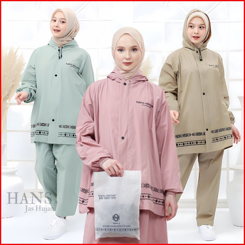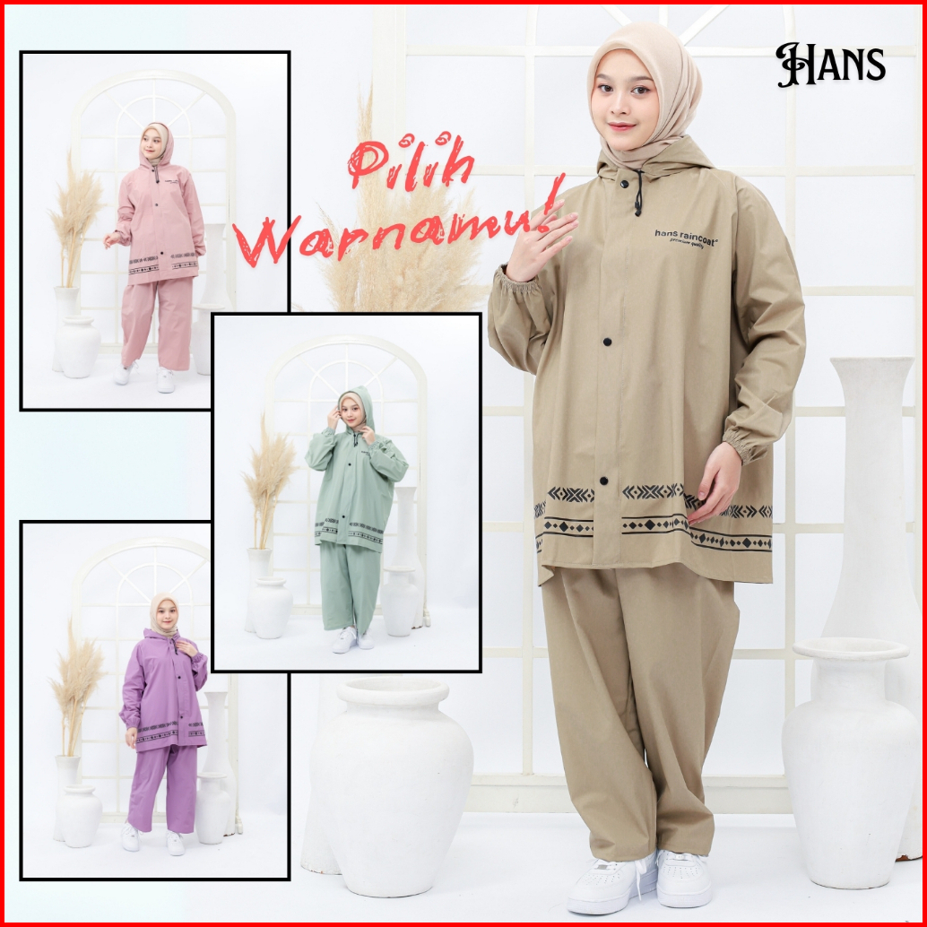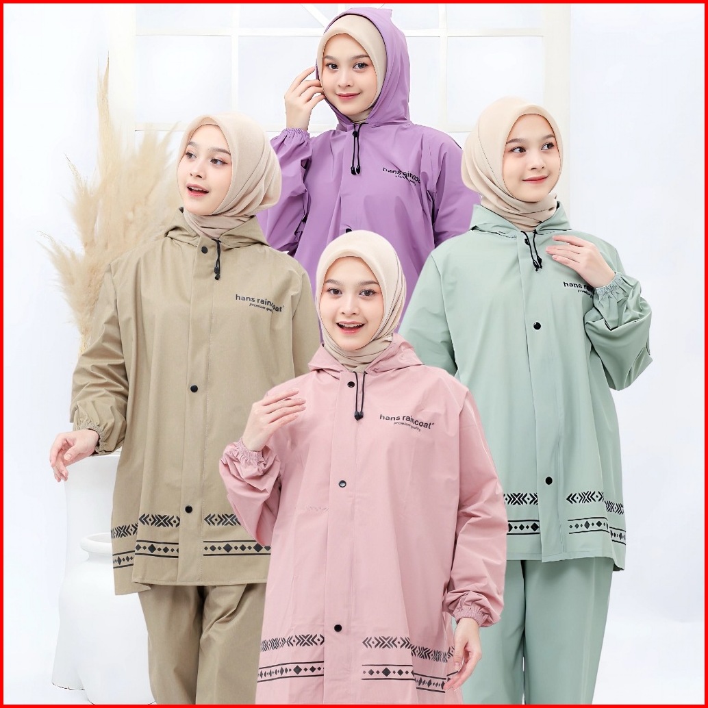 Jas Hujan Pria Wanita Dewasa Setelan Jaket Dan Celana Tebal Hans Warna Pastel