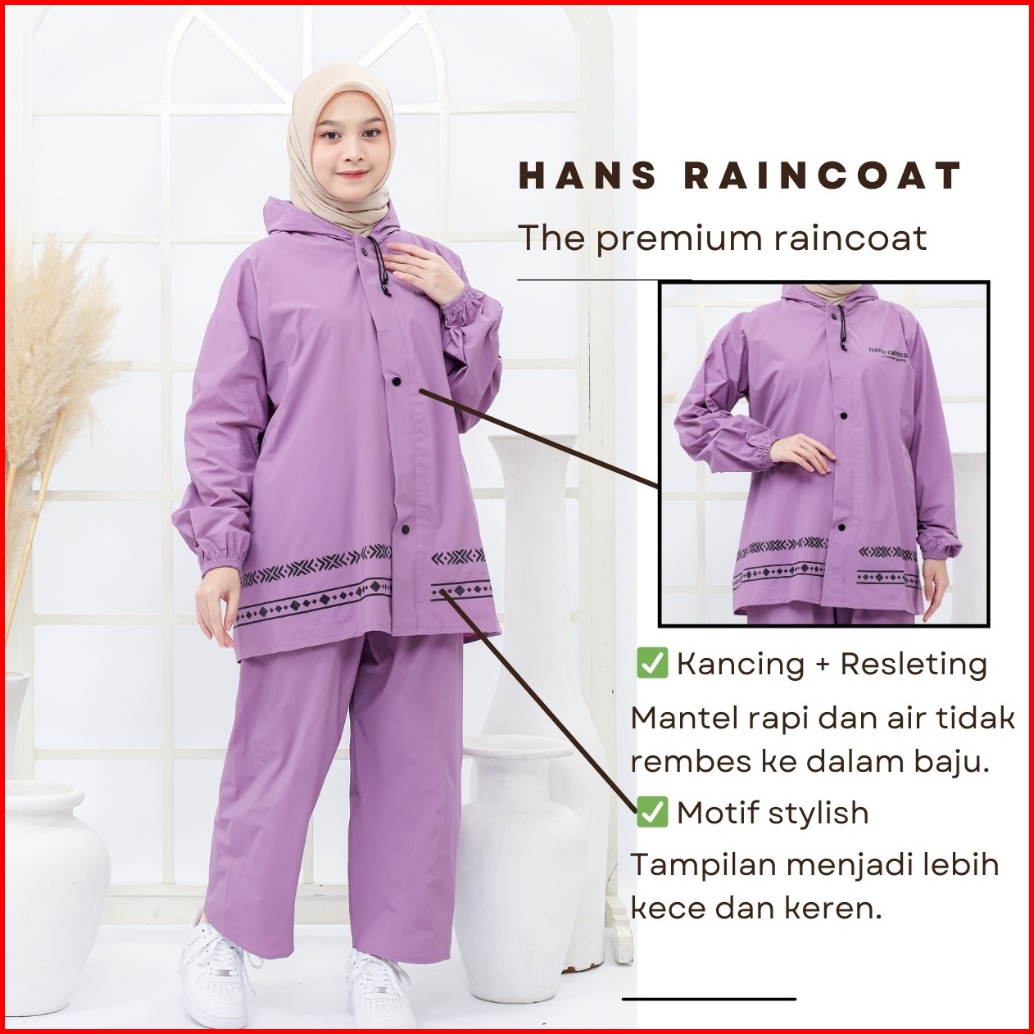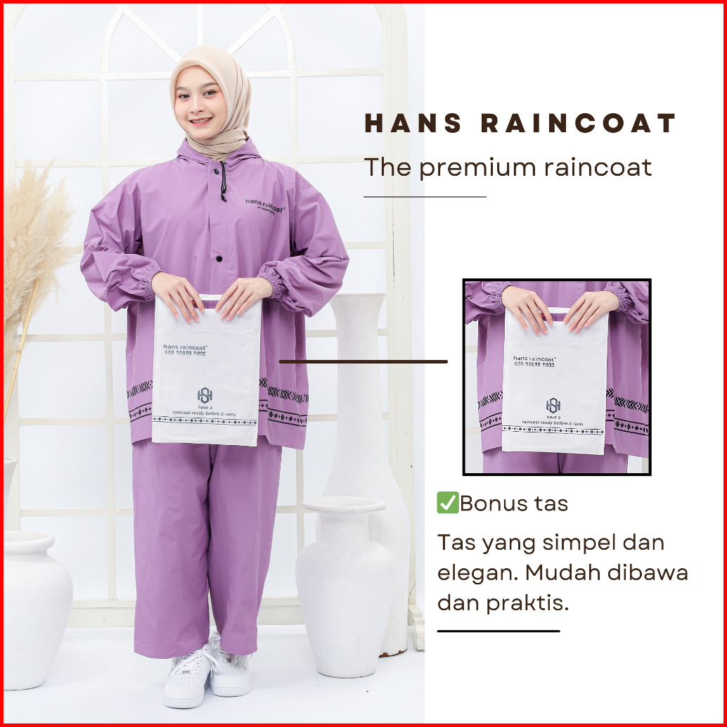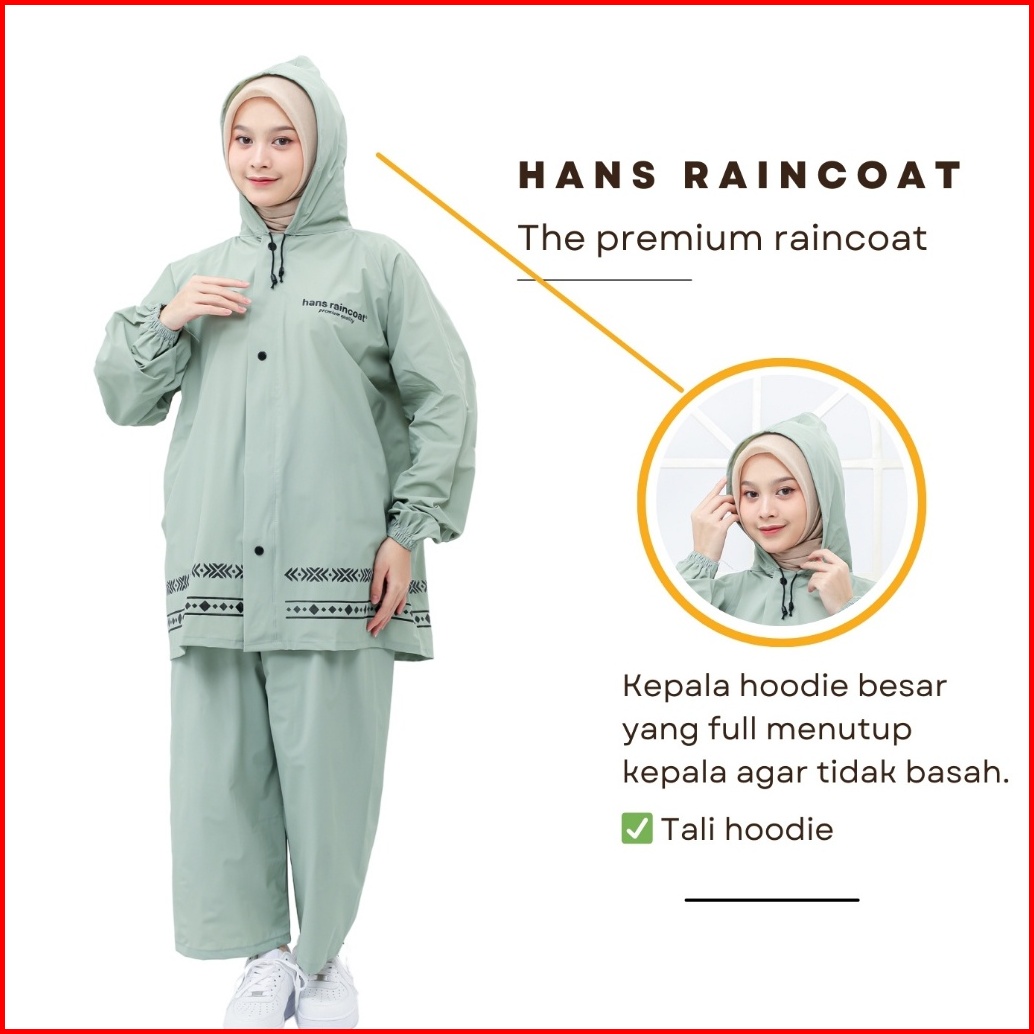 Jas Hujan Pria Wanita Dewasa Setelan Jaket Dan Celana Tebal Hans Warna Pastel
