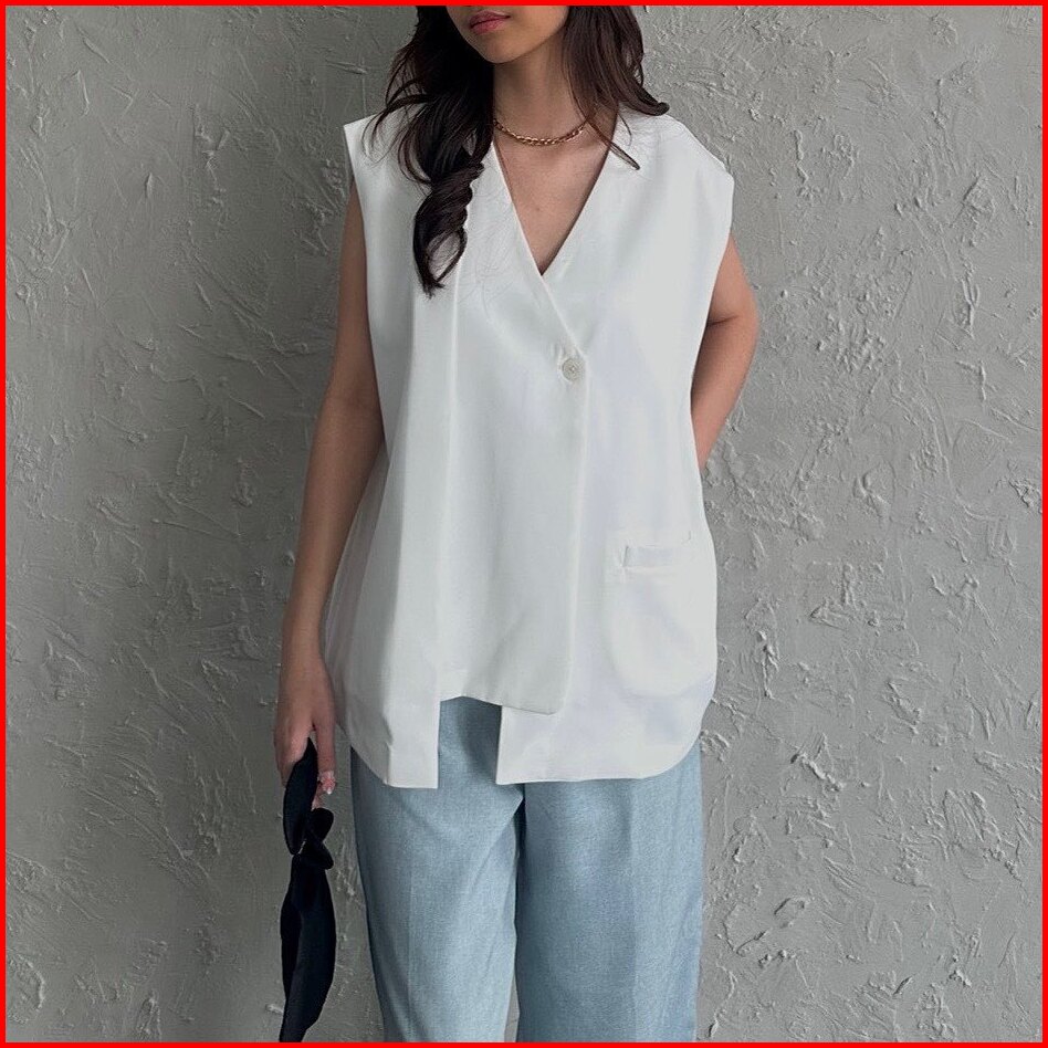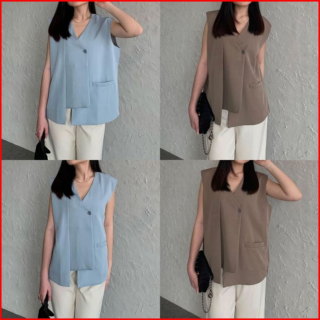 Styluna - Outer Rompi Vest Atasan Luaran Wanita Oversized Korean Style - Rompi Sleeveless Vest Top V3