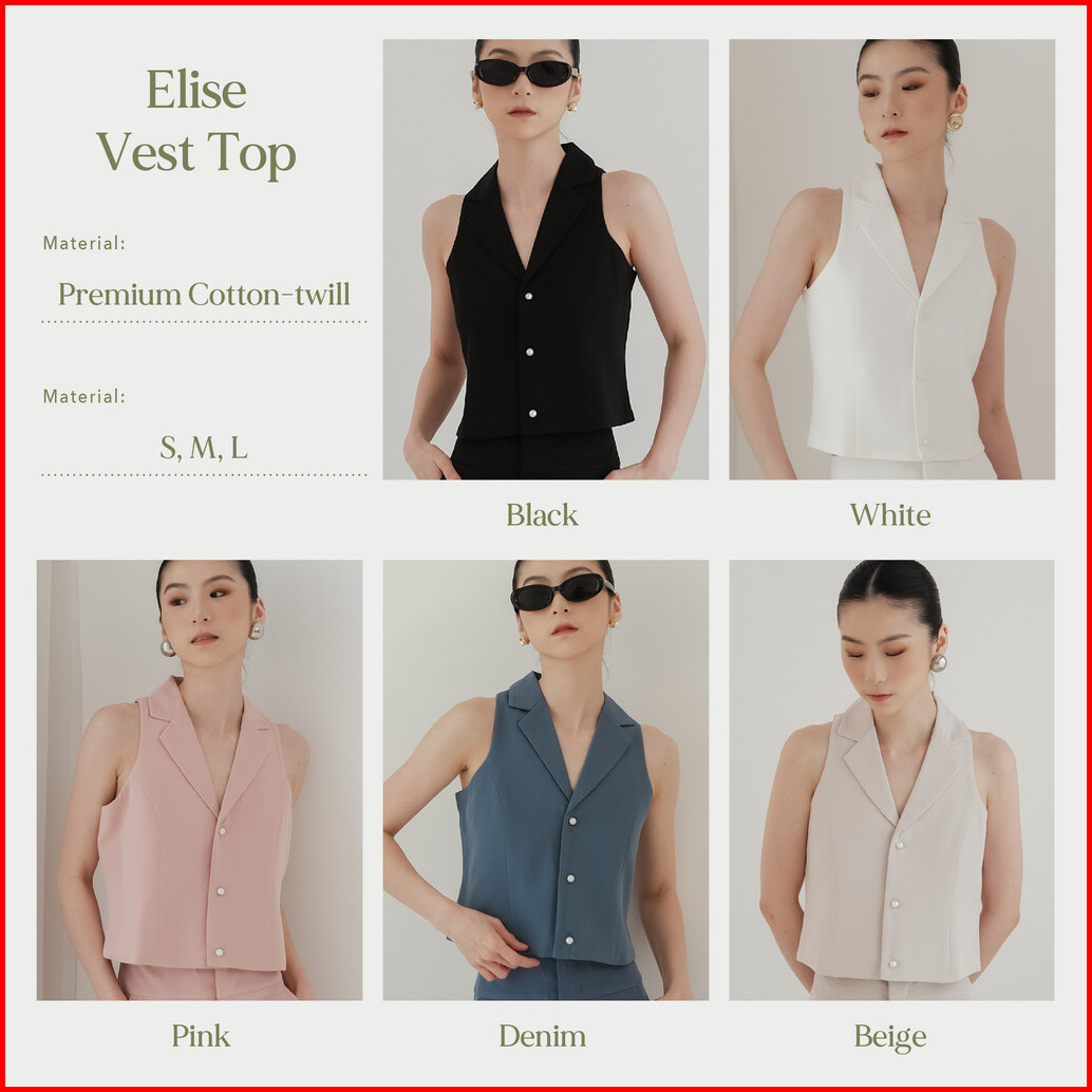 Elise Vest Top -- Ocha Wear Vest Casual Top Pakaian Atasan Wanita Women Formal Tanktop