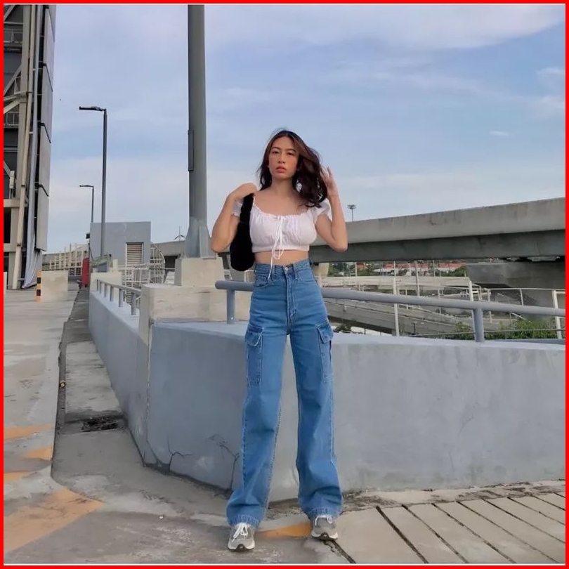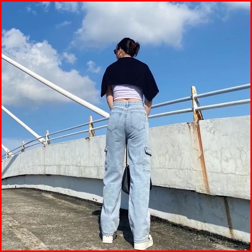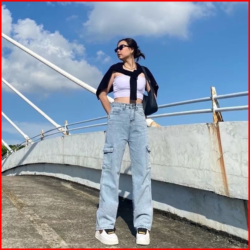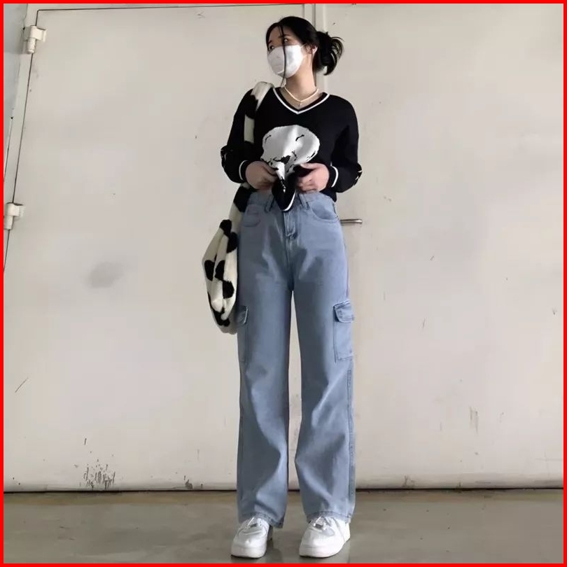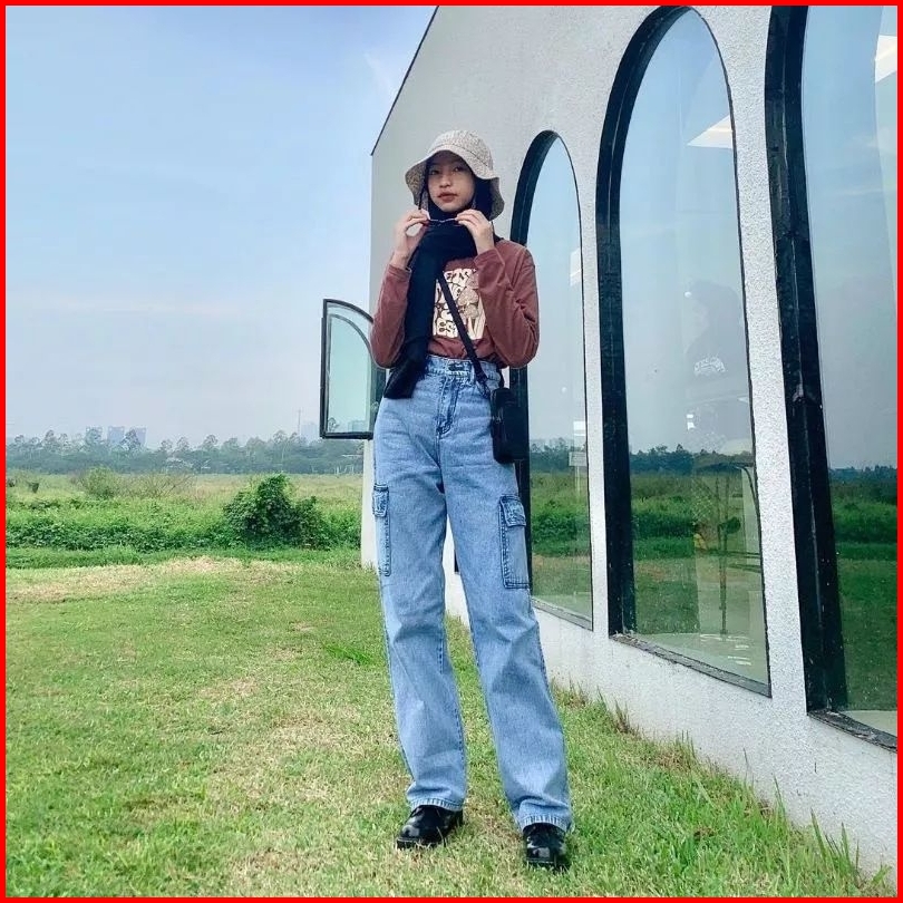 Highwaist Cargo Jeans Wanita Viral Losse