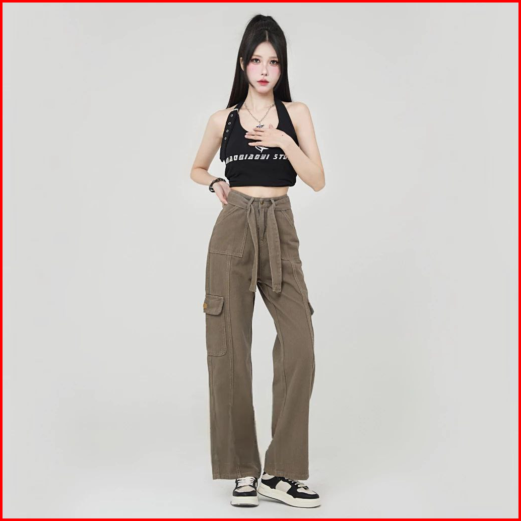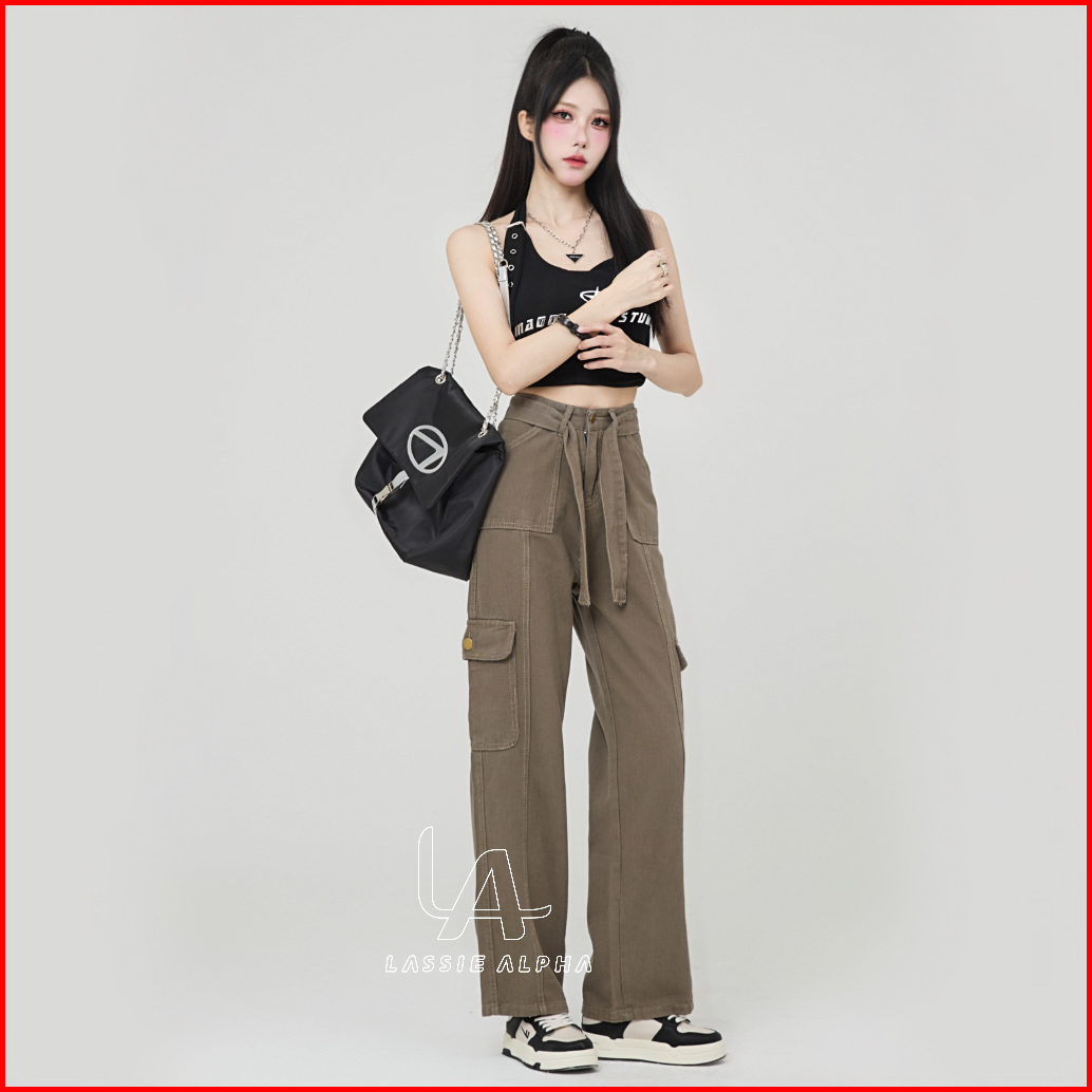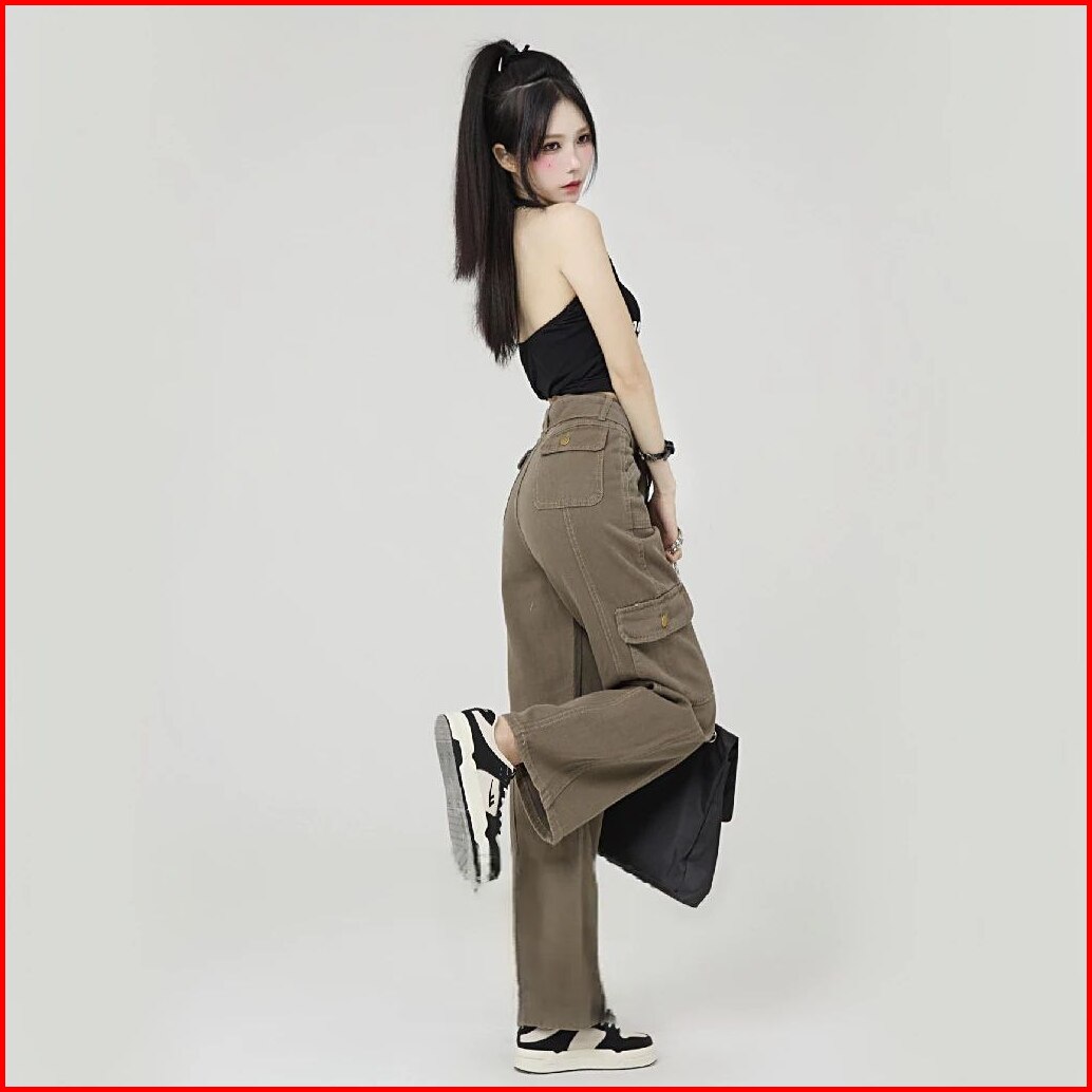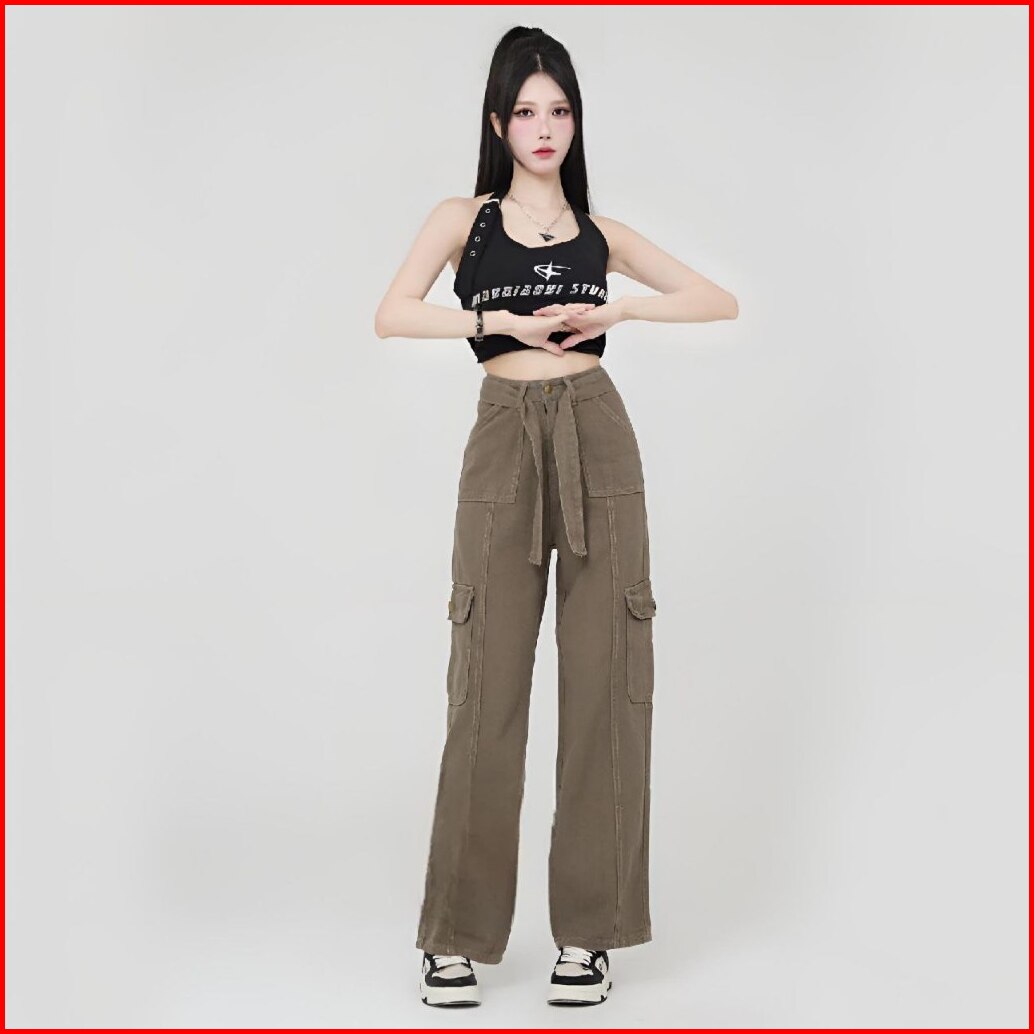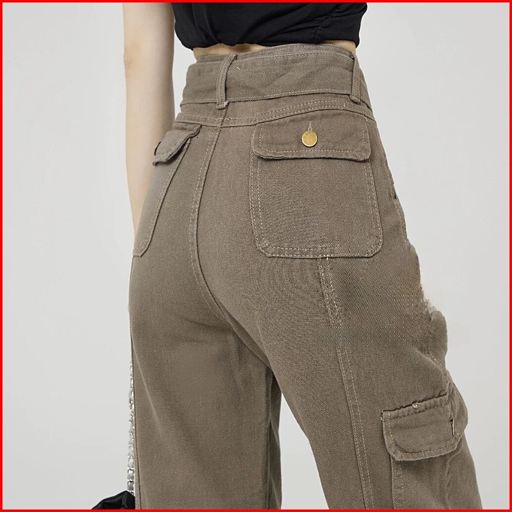 Thirteen - J41 Celana Cargo Jeans Wanita Hw Celana Panjang Boyfriend Jeans Kulot Celana Kargo Wanita High Waist Jeans Lu