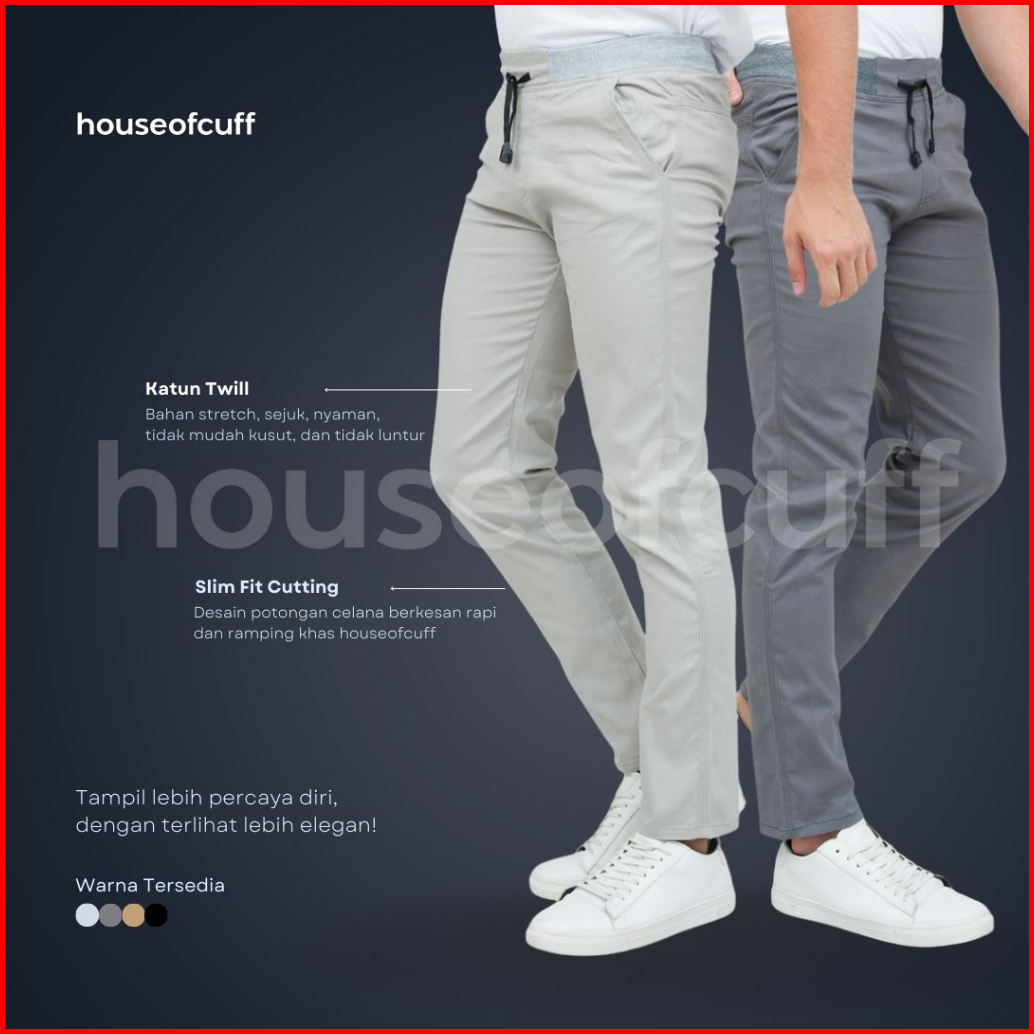 Celana Chino Panjang Cino Slim Fit Pinggang Karet Abuabu Houseofcuff