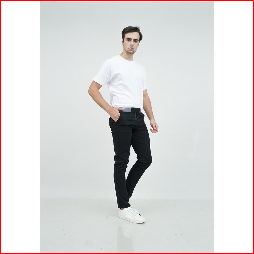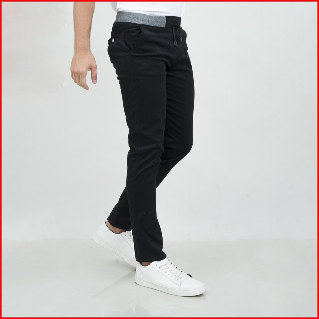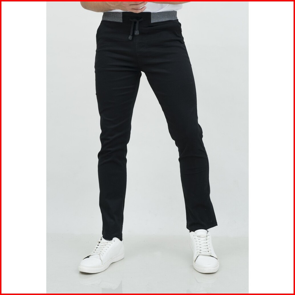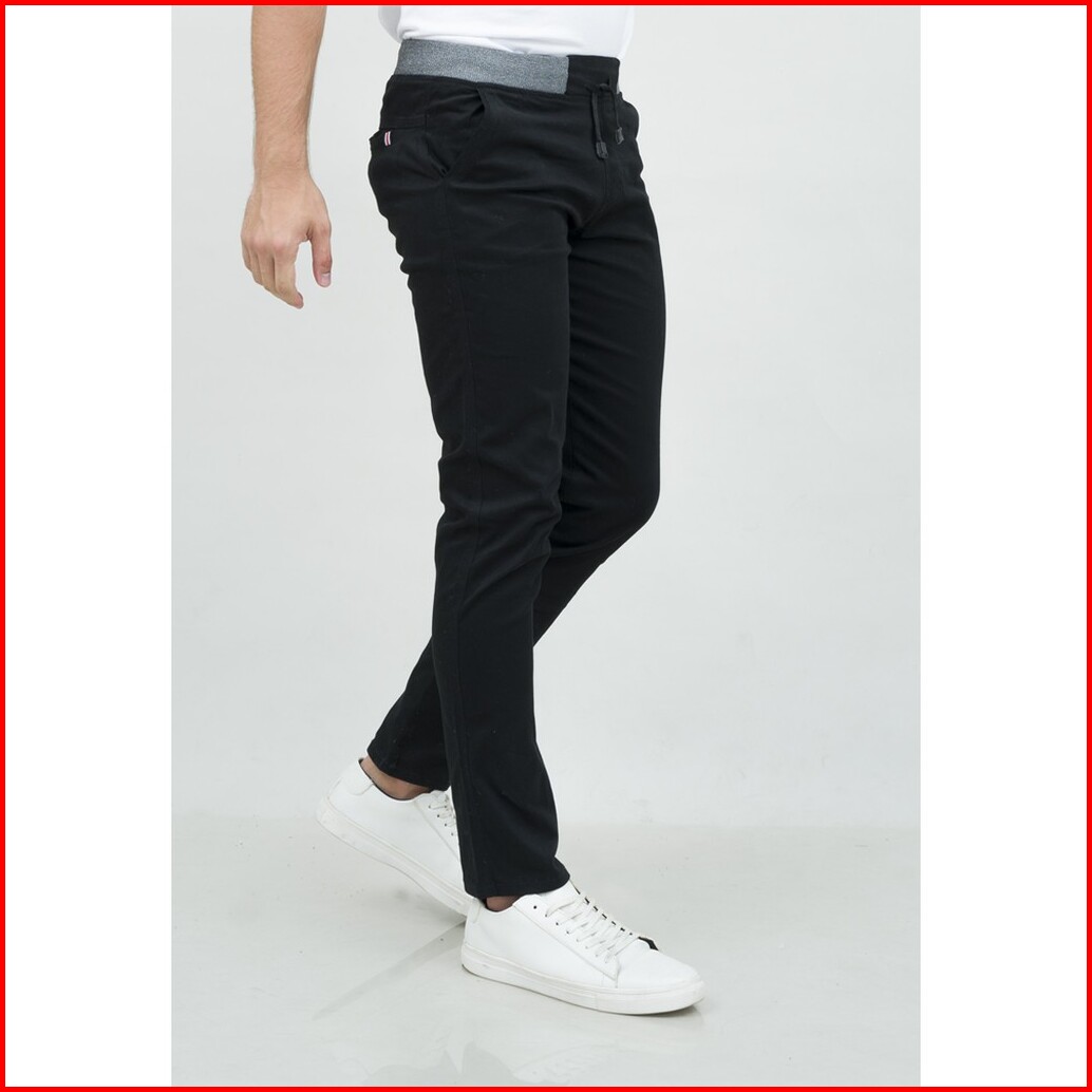 Celana Chino Panjang Cino Slim Fit Pinggang Karet Hitam Houseofcuff