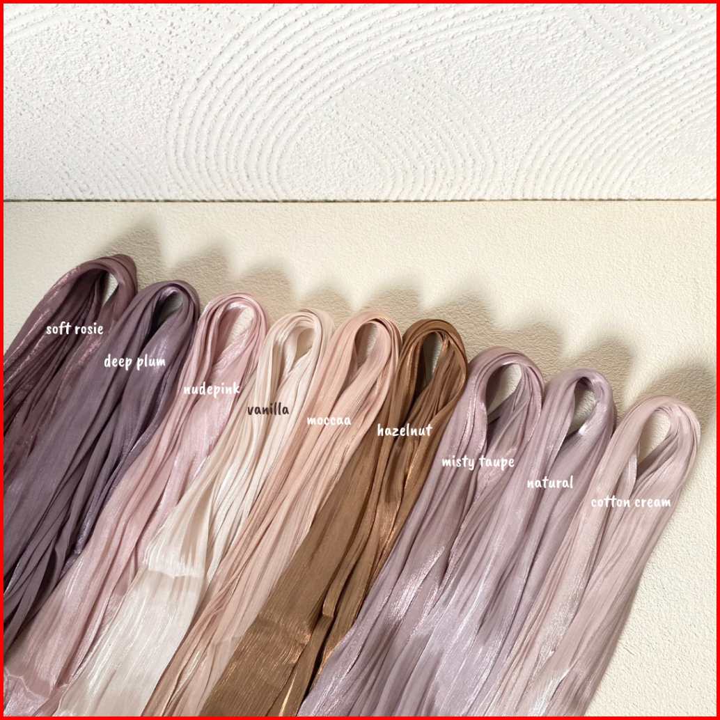 ARMY, BLACK, BROKEN WHITE, COTTON CREAM, CREOLE PINK, DEEP PLUM, HAZELNUT, MISTY GREEN, MISTY TAUPE, MOCCAA, MOSS GREEN, NATURAL, NAVY, NUDEPINK, ROYAL GREEN, SAGE GREEN, SNOW ICE, SILVER, SLATE GREY, SOFT BLUE, SOFT PINK, SOFT GREEN, SOFT ROSIE, VANILLA, DENIM BLUE, LATTEE, GRANOLA, MAROON, SOFT SILVER, AQUA, ASH BROWN, BATA, CHOCO, CHOCONUDE, DUSTY, FRAPPUCINO, IVORY, JEANS BLUE, OYSTER, SOFT BEIGE, SOFT LILAC, STONE, TURKISH