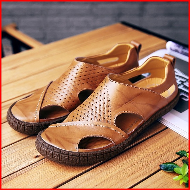 Sandal Kulit Asli Sandal Pria Kasual Sendal Gunung Fashion Import Outdoor Slop 086