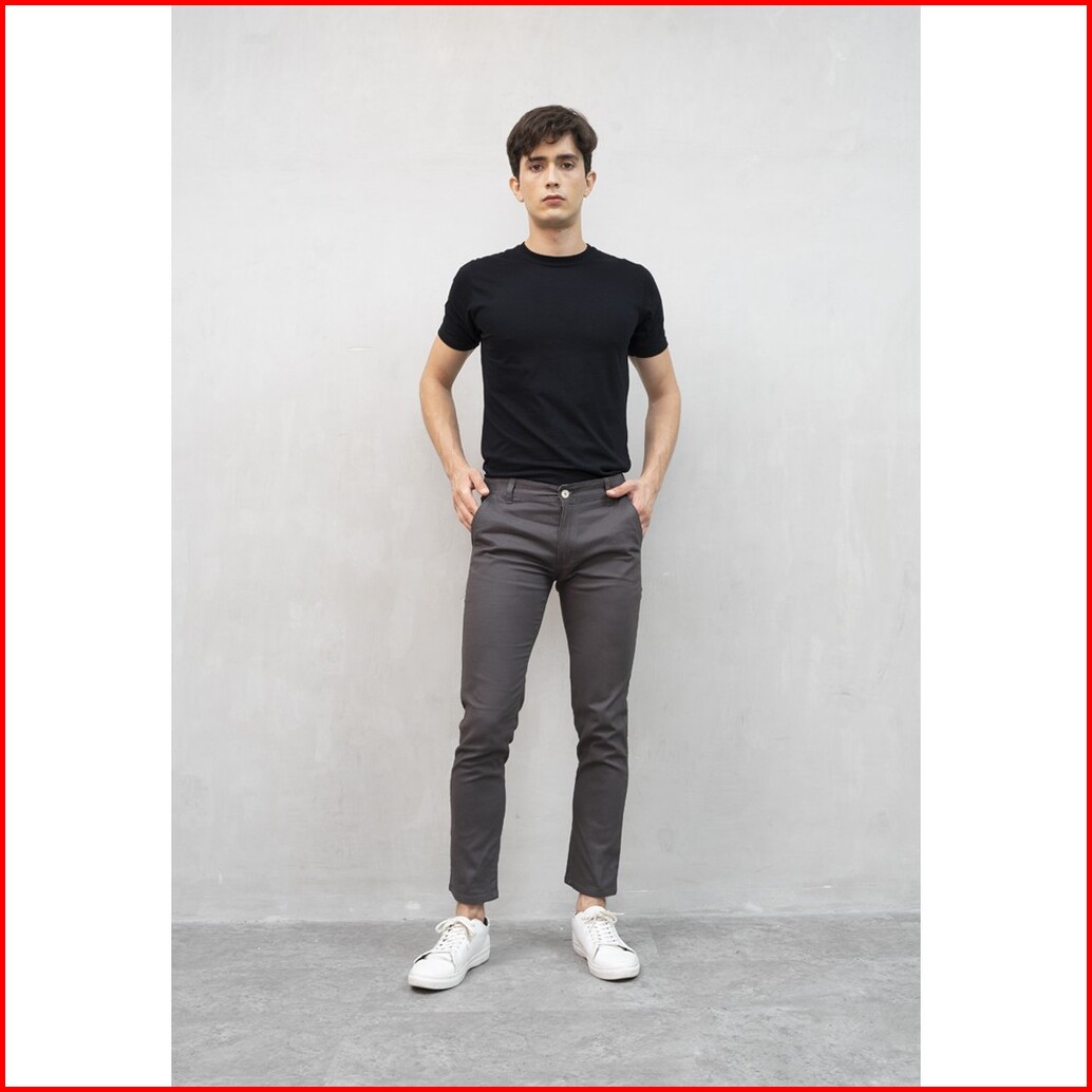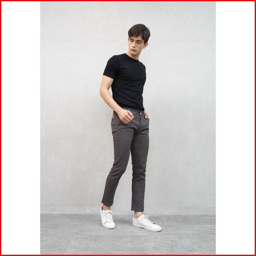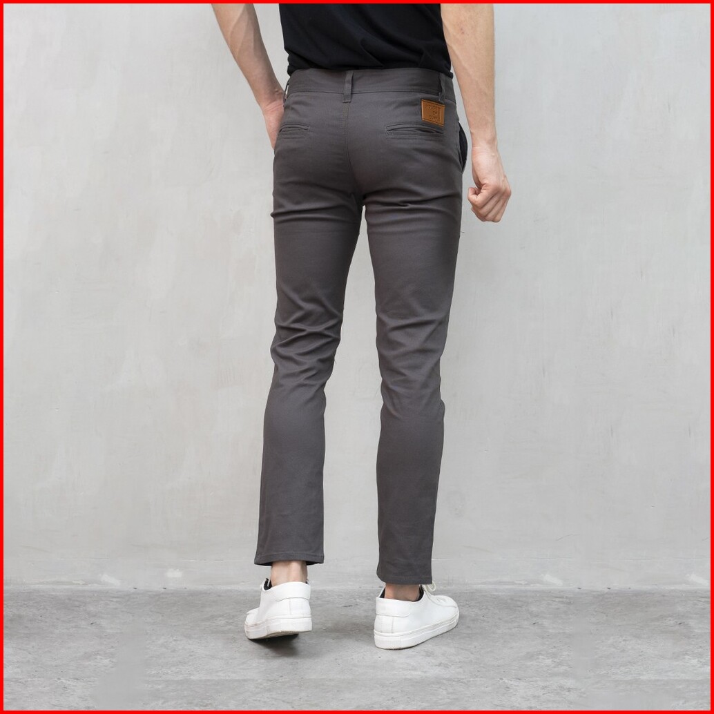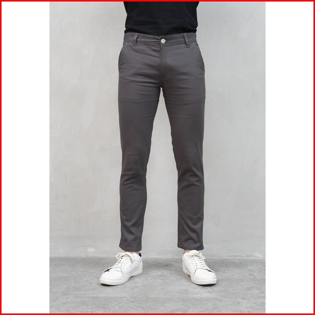 Houseofcuff Celana Chino Panjang Pria Slim Fit Stretch Jeans Abu Gelap