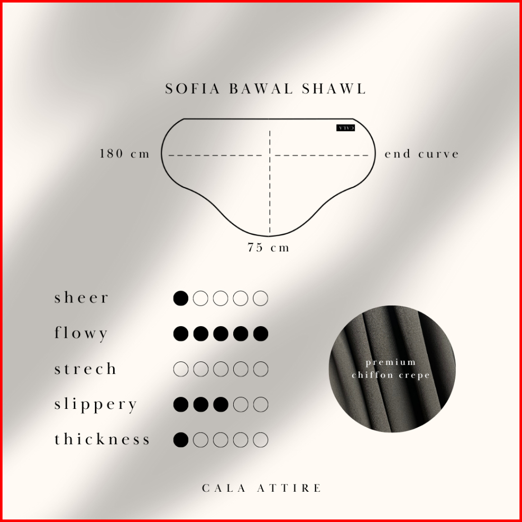 Sofia Bawal Shawl 1 - Cala Attire Pashmina Oval Hijab Ala Malaysia Tudung Jilbab Syari Malay Curve Epscarf Pizza Scarf I