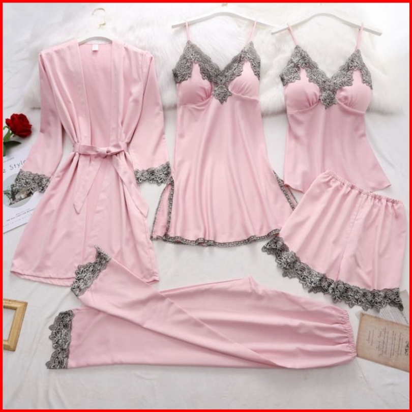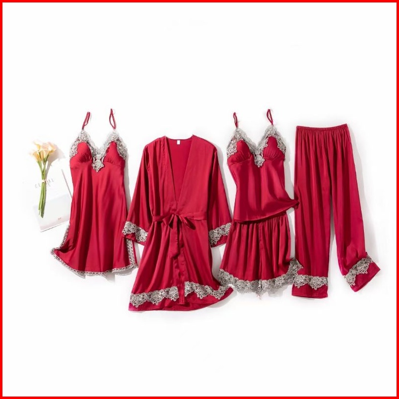 Vee- Pajamas 5 In 1 Silk Premium 93920 Seserahan Baju Tidur