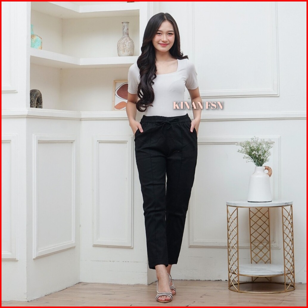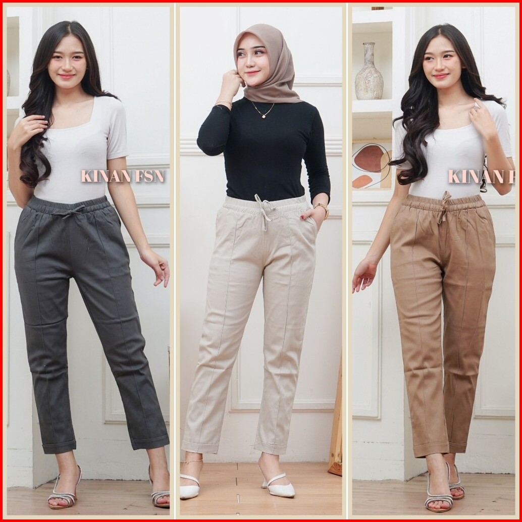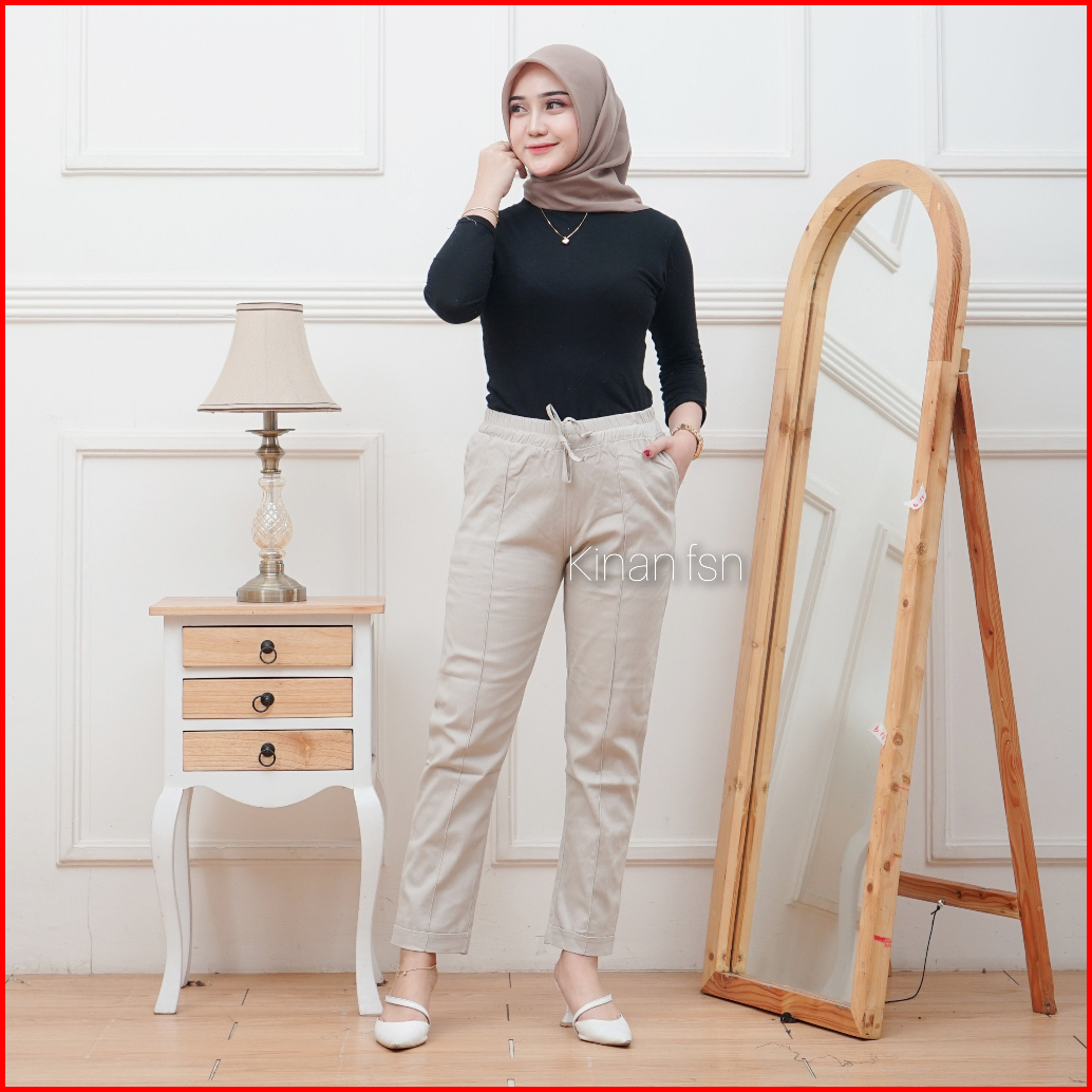Celana Baggy Pants Wanita Casual Katun Twill Combed Stretch Jumbo