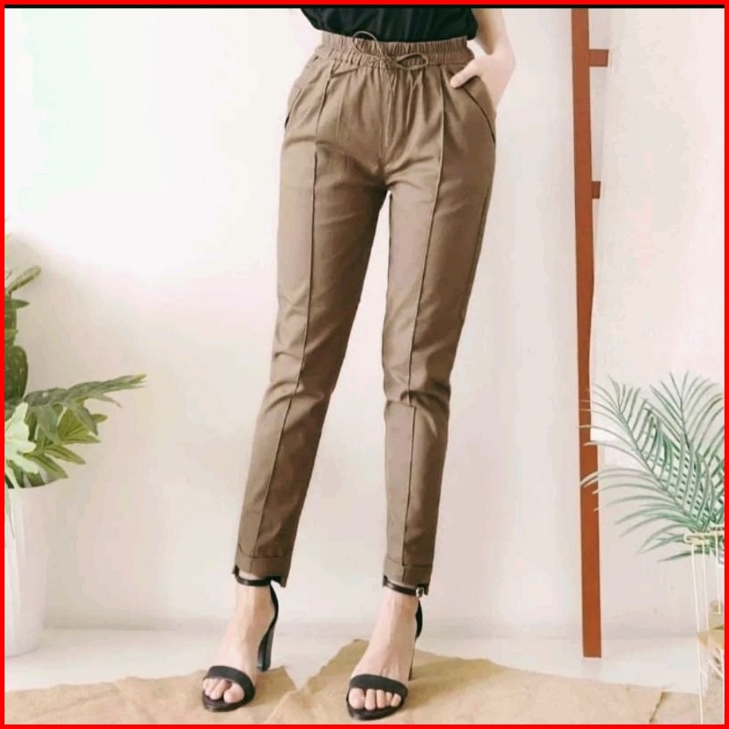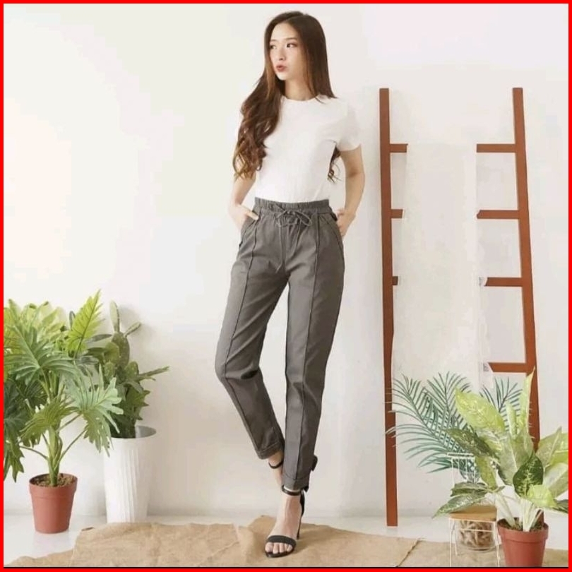 Baggy Pants Celana Kerja Celana Kasual Perempuan Bahan Combet Streach Mulur Tebal Elastis