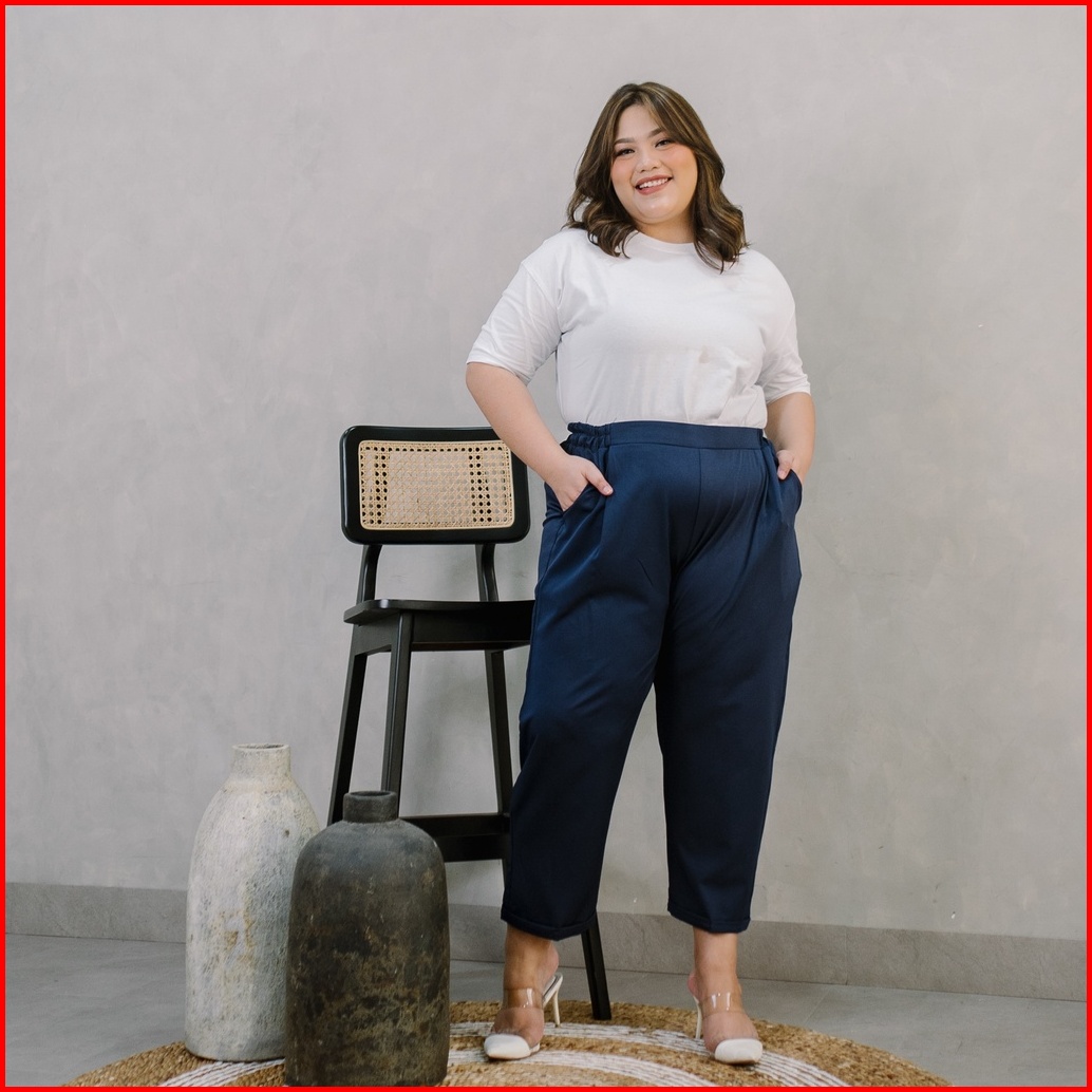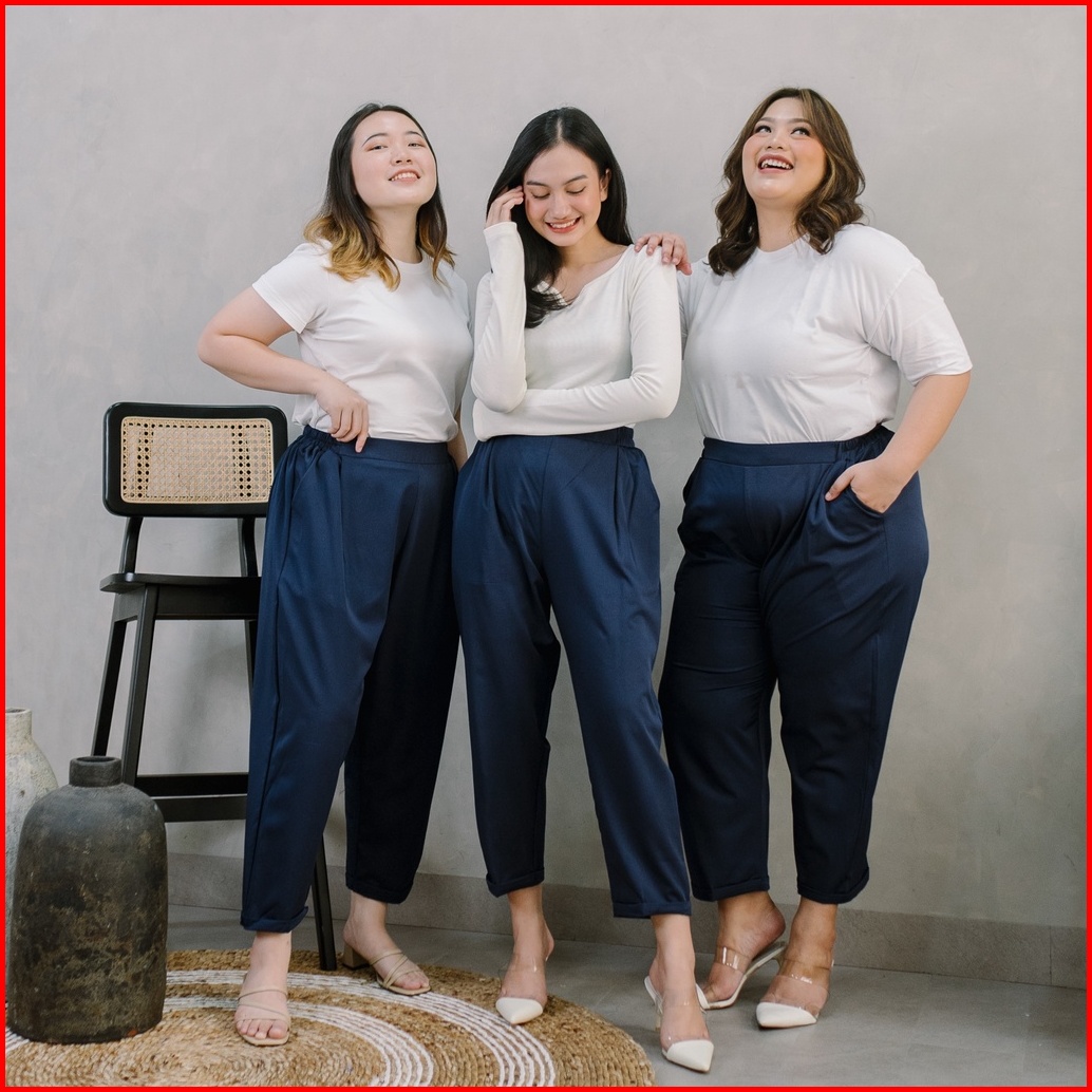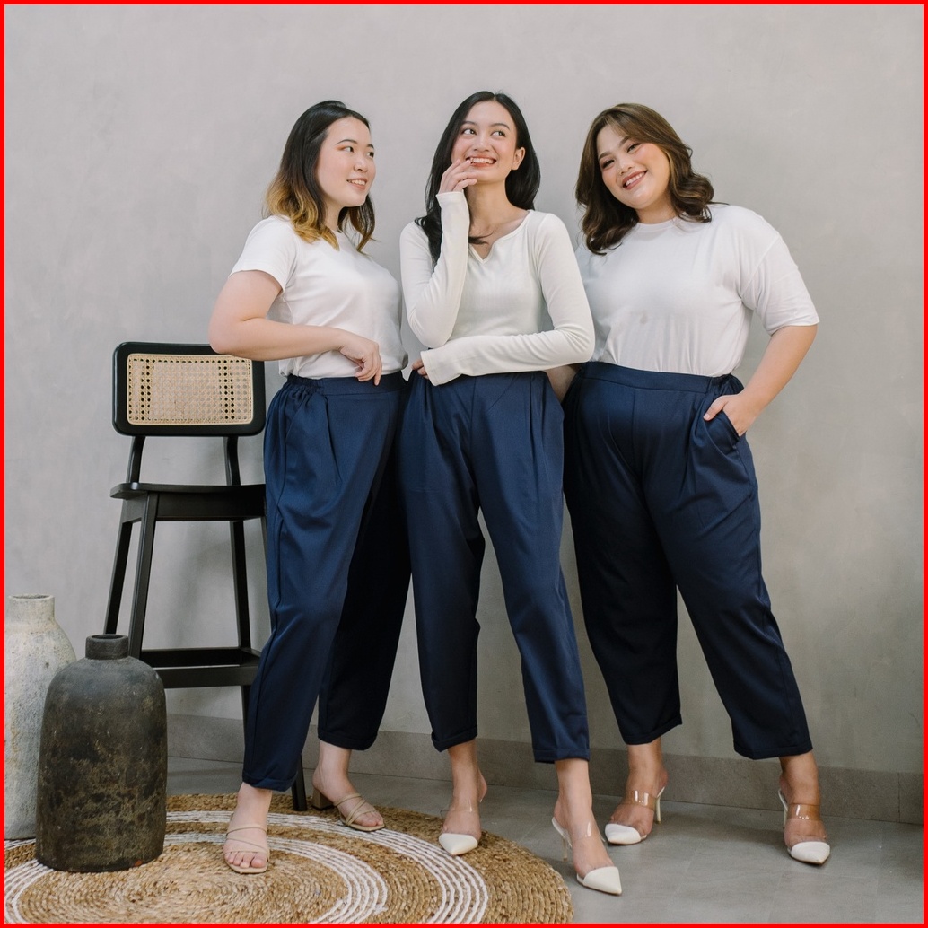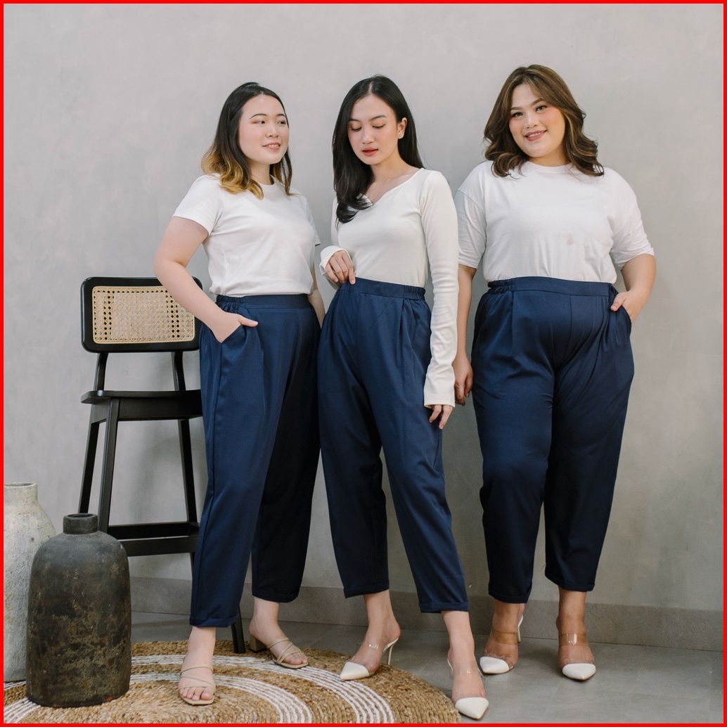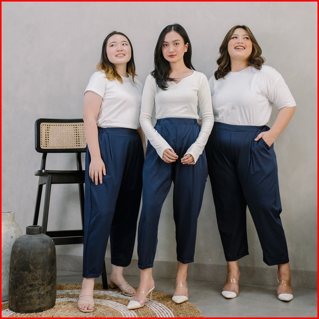 Ie.demode Karin Celana Panjang Wanita Daily Kerja Kantor Big Size Highwaist Baggy Pants Dark Navy