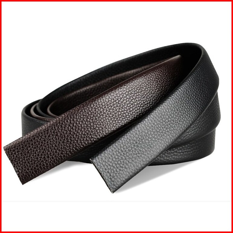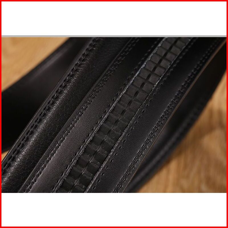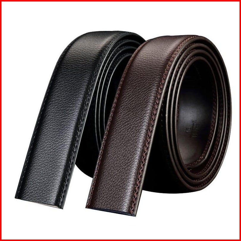 Dobel Jahitan Tali Sabuk Ikat Pinggang Pria Cowok Laki Gesper Model Rel Otomatis Kulit Hitam Cokelat