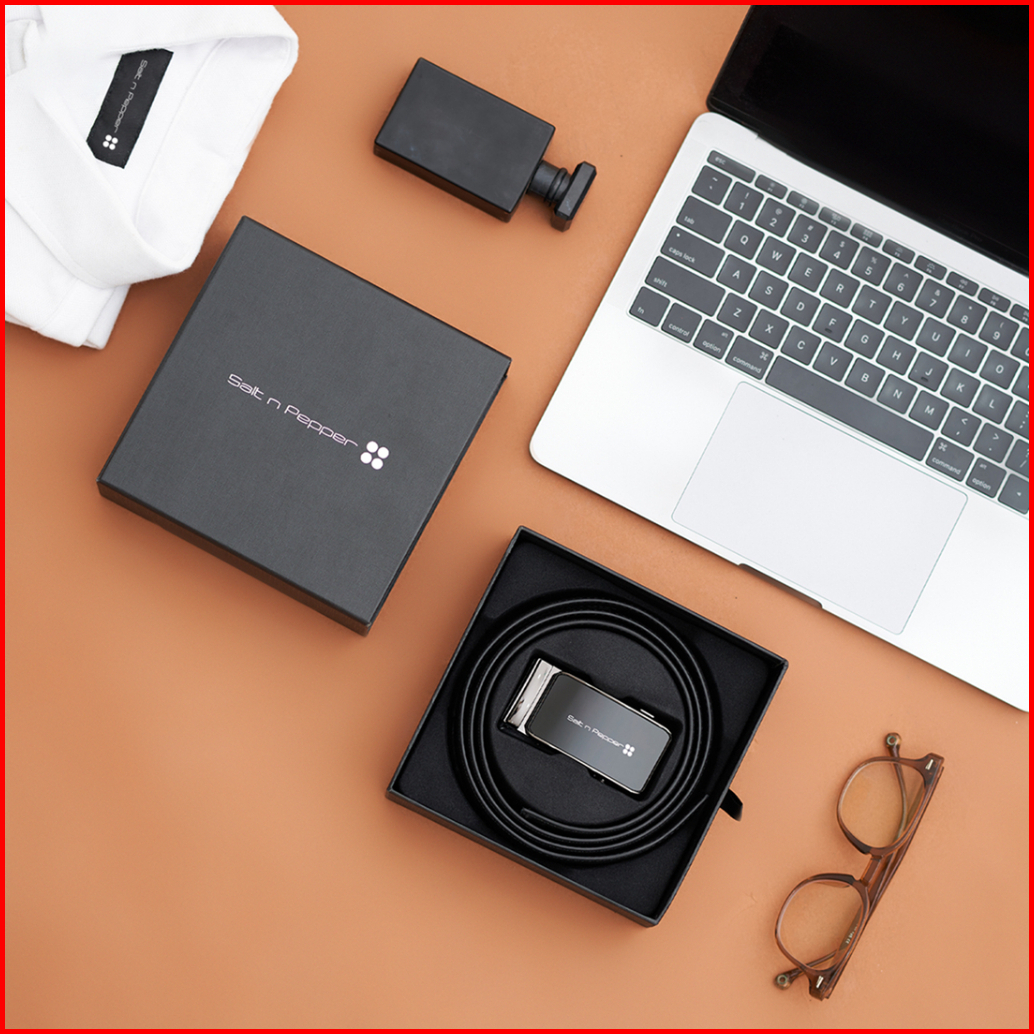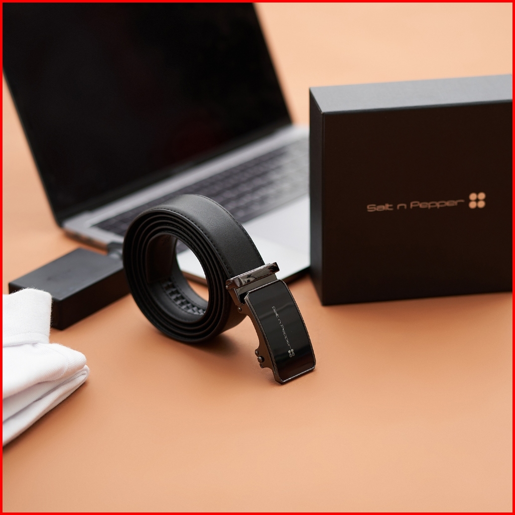 Salt N Pepper Ikat Pinggang Pria Kulit Asli Otomatis Black Hitam Brown Coklat
