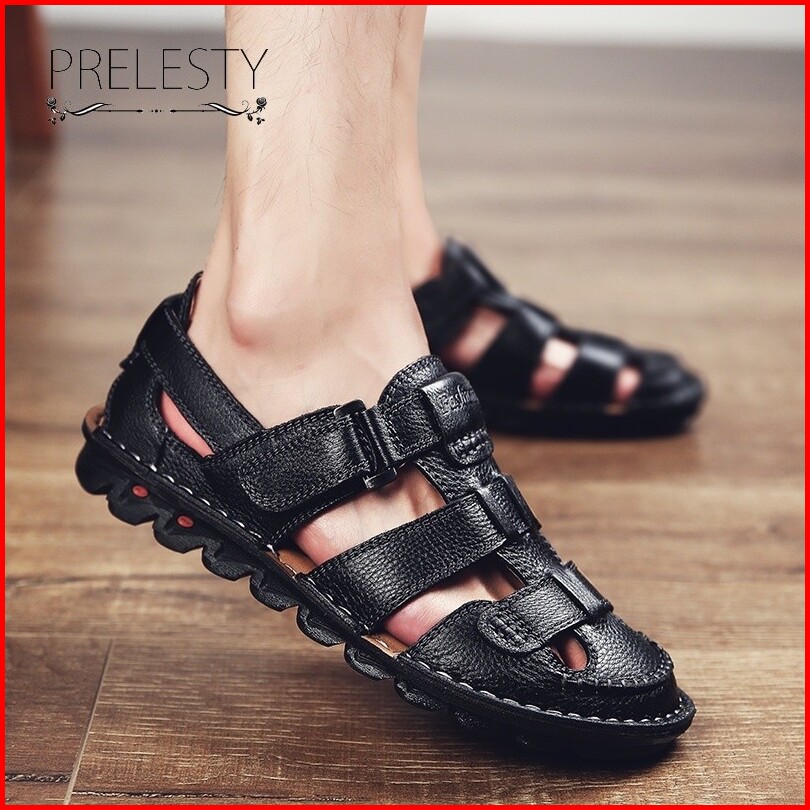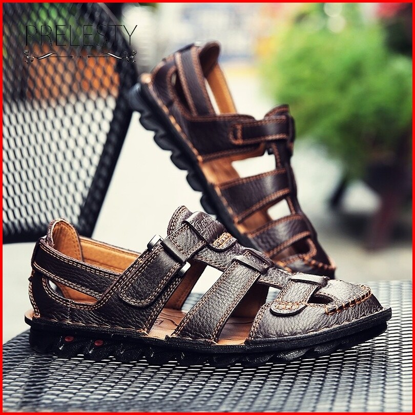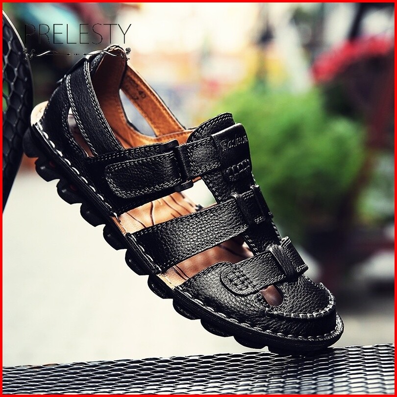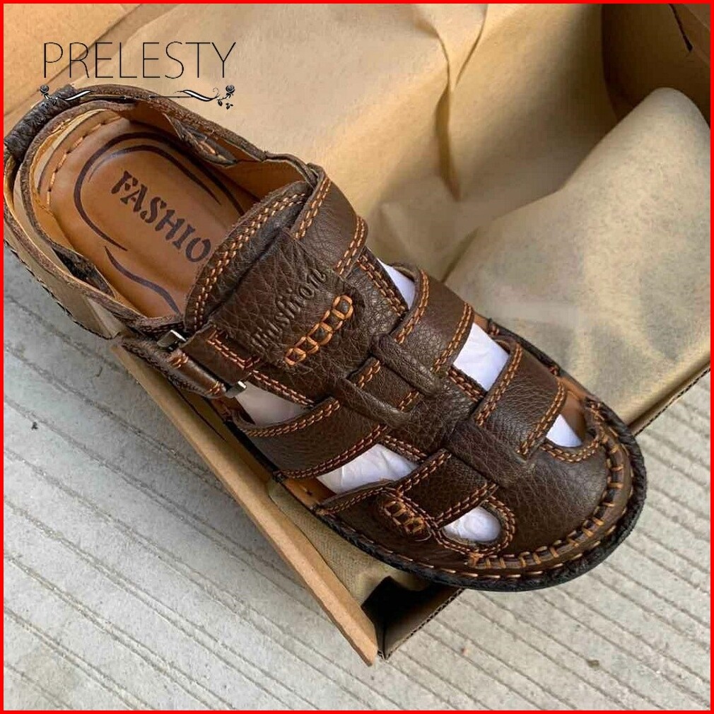 100 Kulit Asli Sandal Hiking Gunung Pria Casual Sendal Santai Cowok Olahraga Outdoor Keren Touring Lentur Pantai 180
