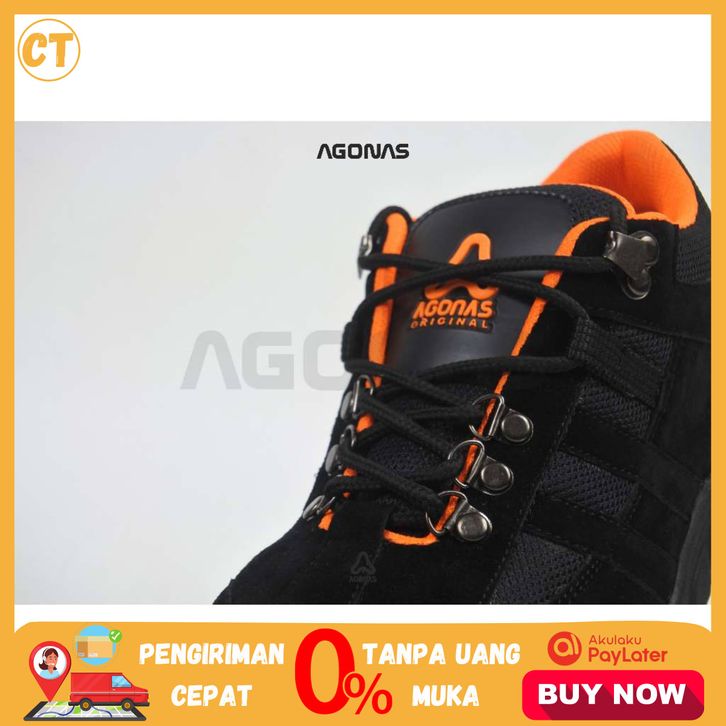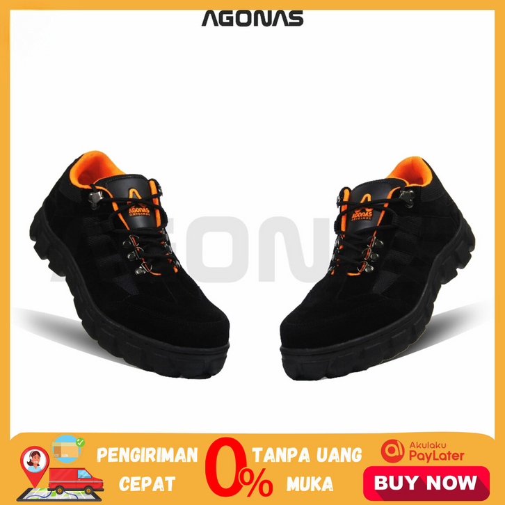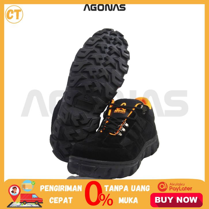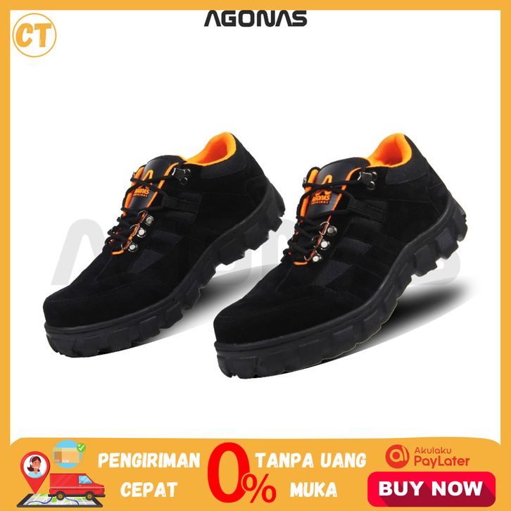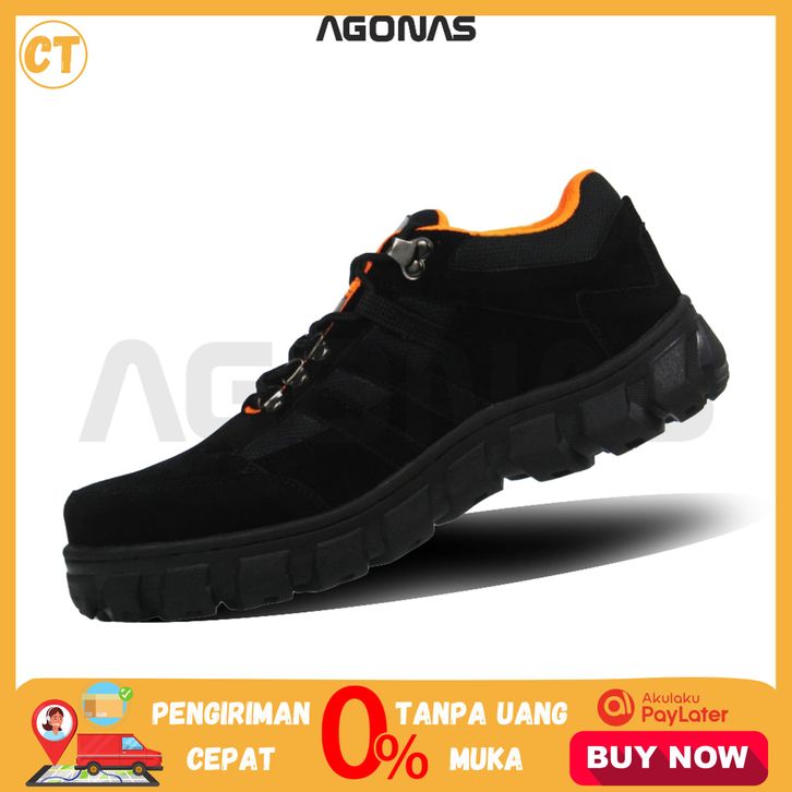 Sepatu Pria Agonas Boots Safety Ujung Besi Model Hiking Trekking Touring Warna Hitam Preimum Quality Official Store