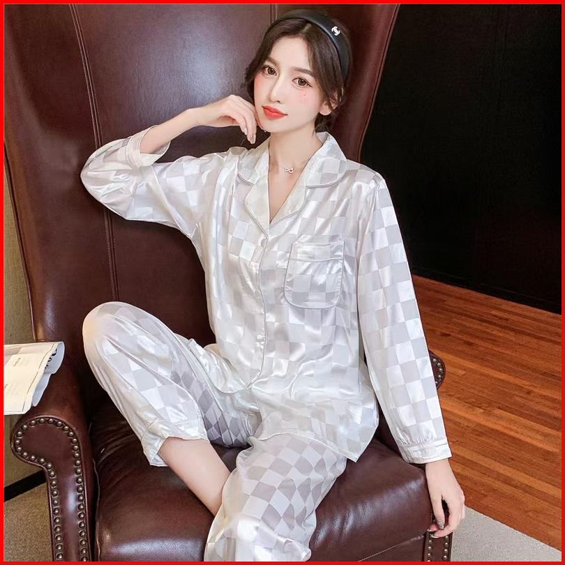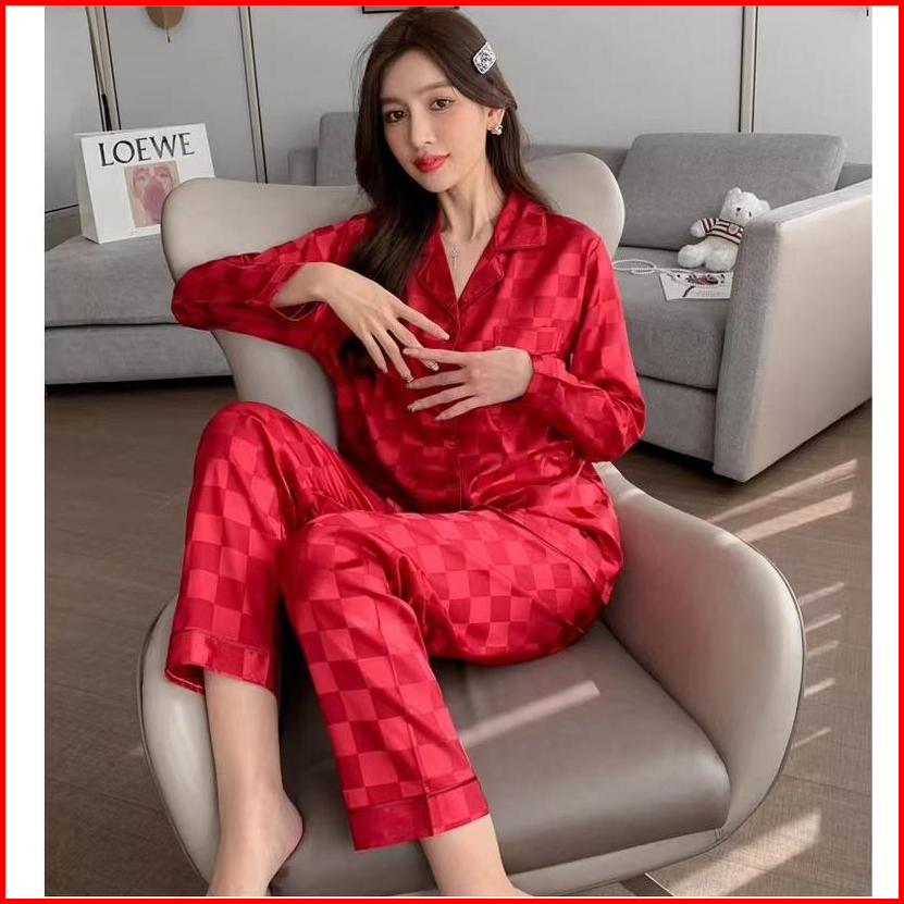 2025 Piyama Gaya Korea Baru Celana Panjang Lengan Panjang Setelan Homewear Sutra Es