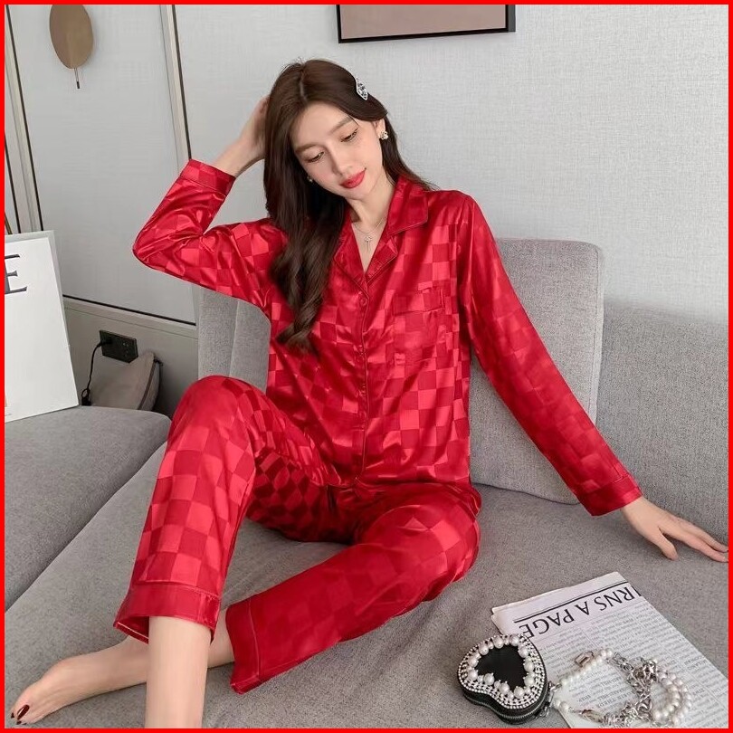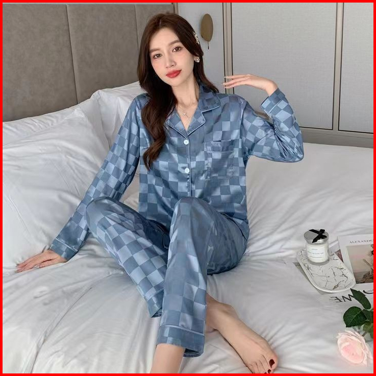 2025 Piyama Sutra Satin Es Baru Piyama Lengan Panjang Celana Panjang Set Baju Tidur