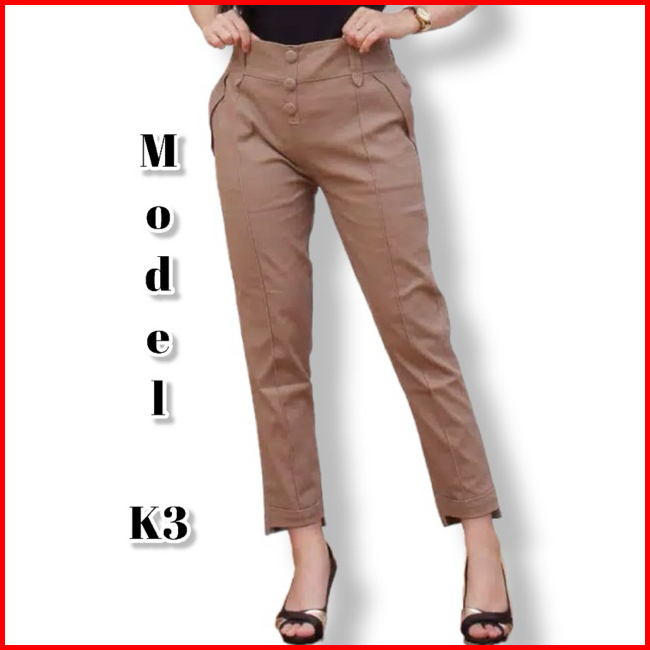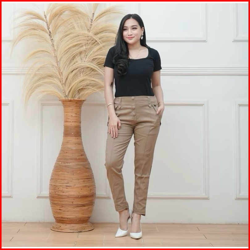 Baggypants Celana Wanita Kasual Kancing 3 Katun Twill Stretch Premium